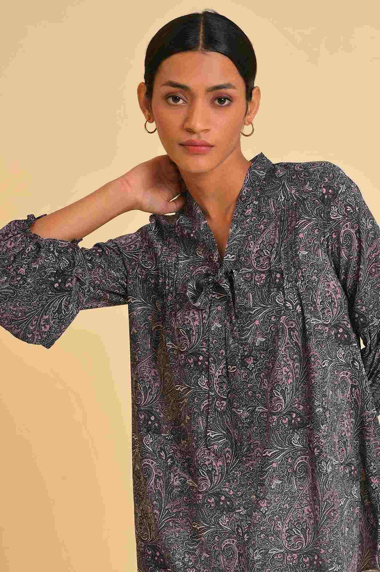 Black Paisley Printed A-Line Top