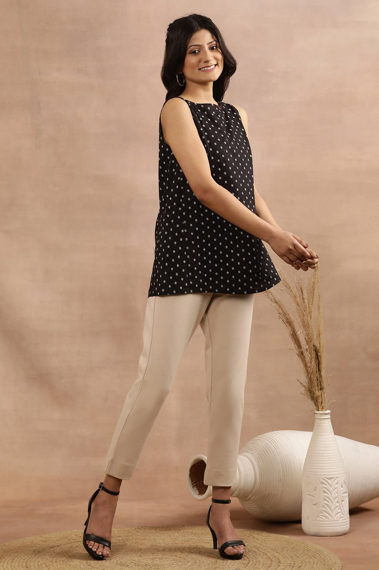 Discover the perfect blend of comfort and style with this captivating fusion top for women. Made from 100% pure cotton, this sleeveless top offers unparalleled breathability and softness, ideal for casual outings. The black hue provides a versatile canvas for the eye-catching floral print, adding a touch of feminine charm to your ensemble. The keyhole neckline introduces an element of intrigue and sophistication, while the A-line silhouette flatters various body shapes. This woven garment showcases expert craftsmanship, ensuring durability and a polished appearance. The sleeveless design makes it a great choice for warm weather or layering under jackets. Whether you're meeting friends for brunch or enjoying a leisurely weekend stroll, this floral printed cotton top will keep you looking effortlessly chic and feeling comfortable throughout the day.