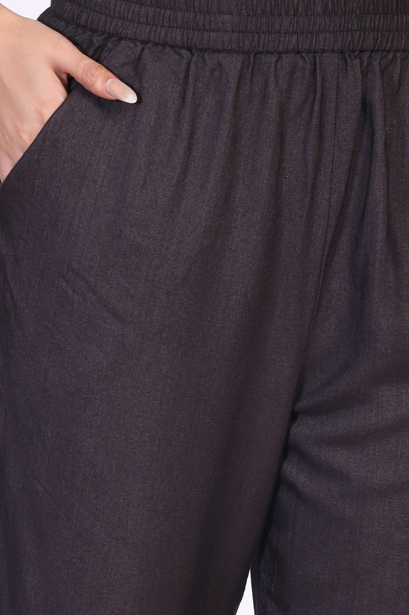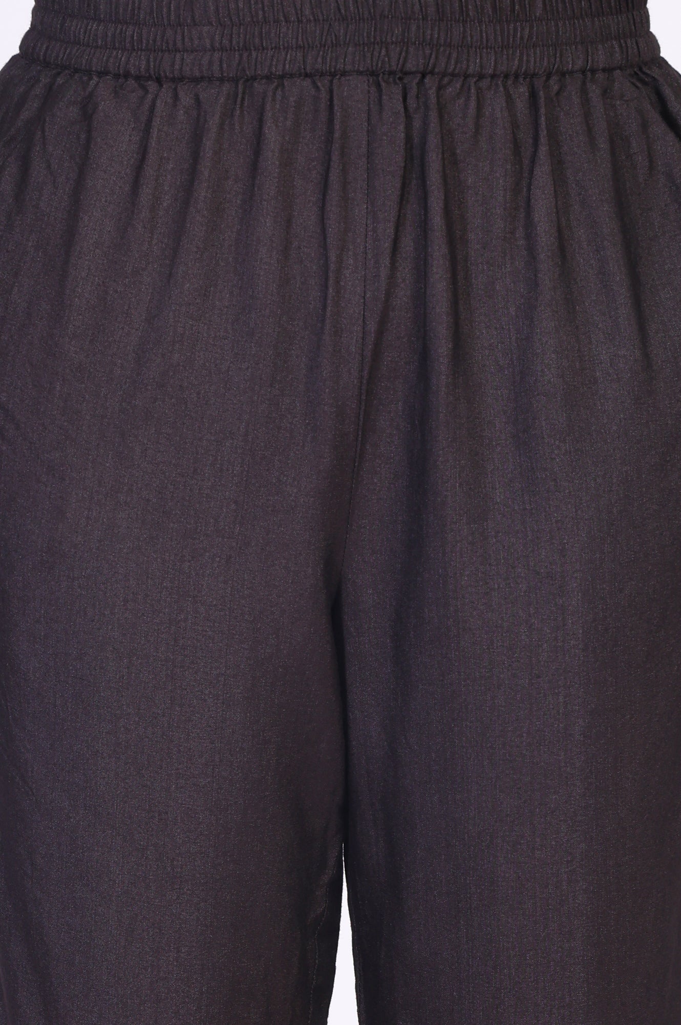A masterpiece of timeless tradition, this kurta set for women channels heritage charm in every swirl of its flowing silhouette. It’s the kind of ethnic wear that feels both grand and personal. The ensemble paints a picture in rich rust, deep indigo, and warm beige, telling a story through its intricate, all-over ethnic motifs that feel like wearable art. You’ll love the flattering V-neckline, which is meticulously detailed with delicate embellishments, adding a subtle glimmer that catches the light beautifully. The classic Anarkali shape offers a graceful, calf-length flare that moves with you, complemented by comfortable three-quarter sleeves that end in a patterned border. This elegant kurti set is a complete, curated look, pairing the stunning printed tunic with sleek, solid-hued straight pants that create a perfect, harmonious balance. What truly makes this ethnic co-ord set a showstopper is the unique solid satin dupatta. It's designed not just for a beautiful drape but with an integrated, embellished choker-style neckpiece, an unexpected detail that frames the neckline with pure sophistication. This three-piece satin kurta pant dupatta set is opaque and crafted for moments that call for effortless elegance.