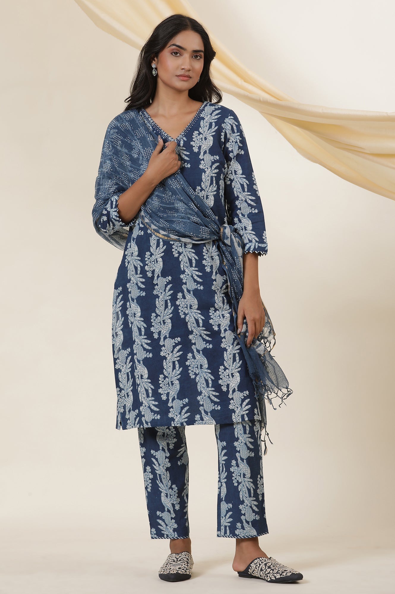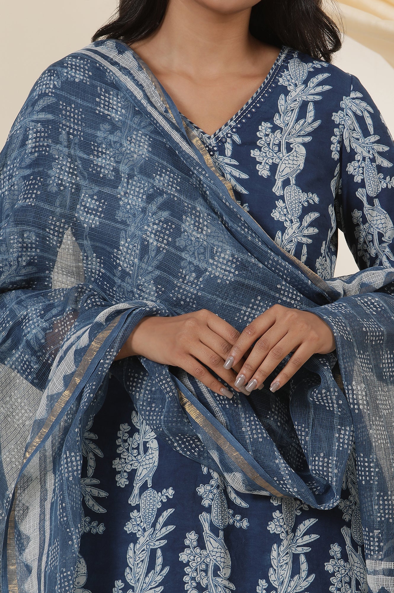 Blue Dabu Kota Doria Drape