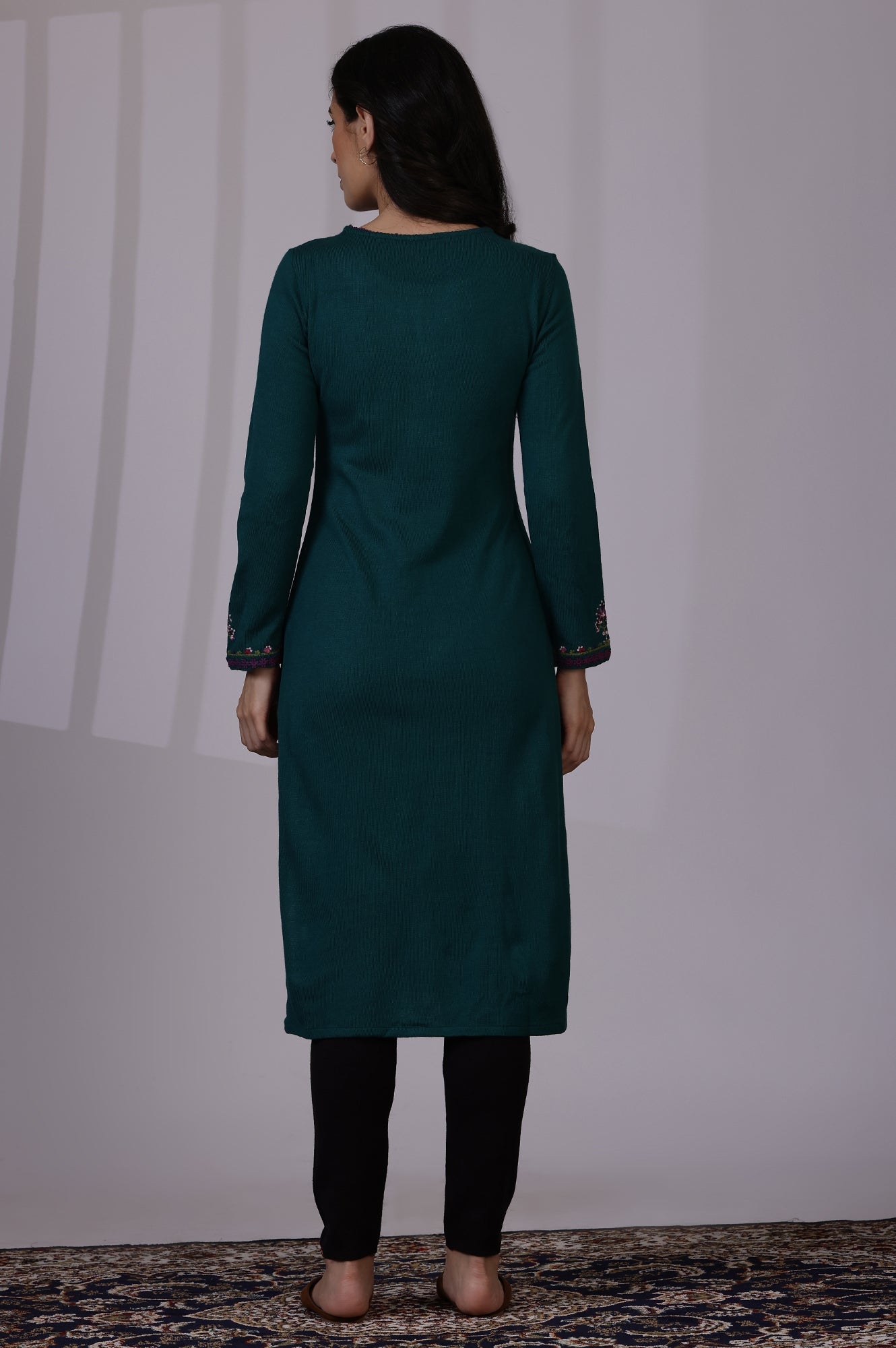 Elevate your casual wardrobe with this stunning blue kurta from W. This mid-calf length fusion piece is perfect for women who appreciate a blend of style and comfort. Crafted with meticulous thread work, the kurta features a round neckline and full sleeves, offering a sophisticated silhouette. The knitted construction technique ensures a comfortable fit, while the 100% acrylic composition provides durability and easy maintenance. The straight cut and slit detail add a contemporary touch to this traditional garment. Whether you're running errands or meeting friends for a casual outing, this kurta is versatile enough to suit various occasions. The fusion of modern design elements with ethnic charm makes it a must-have addition to your wardrobe. Embrace the perfect balance of style and comfort with this exquisite blue kurta from W.