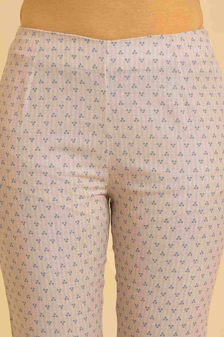Beige Floral Printed Pure Cotton Flared Kurta and Slim Pant Set