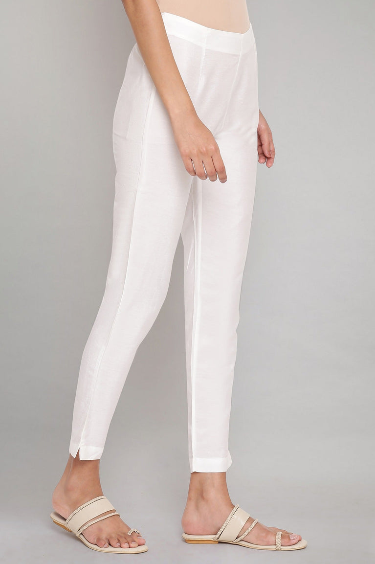 Tailored for versatility! These slim pants for women sculpt a sleek mid-rise profile in pristine white, accentuated by a straight-leg silhouette. A concealed zip closure keeps the waistline smooth, while slant pockets lend practicality. The ankle-length hem adds a touch of elegance, making it perfect for pairing with kurtas or casual tops. Crafted from breathable cotton, this refined piece ensures comfort and style for any occasion.