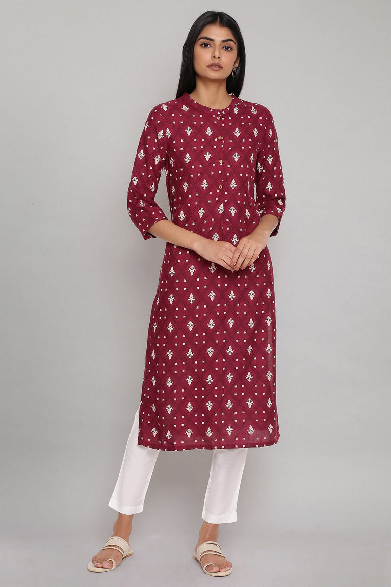 Elevate your ethnic wardrobe with this stunning maroon kurta, perfect for special occasions. Crafted from 100% viscose, this woven piece features a full sleeve design and a classic round neckline. The geometric printed pattern adds a touch of contemporary flair to the traditional silhouette. The a-line cut flatters various body types, while the shantung fabric lends a luxurious texture and sheen. This kurta seamlessly blends timeless elegance with modern aesthetics, making it an ideal choice for festive gatherings, weddings, or any event where you want to make a lasting impression. The rich maroon hue exudes sophistication and warmth, complementing a range of skin tones. Pair this versatile piece with matching bottoms and statement jewelry for a complete, eye-catching ensemble that celebrates your cultural heritage with style.