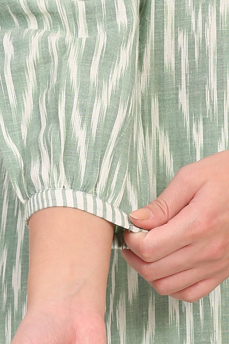 New Sage Green Ikat Printed A-Line Pure Cotton Kurta