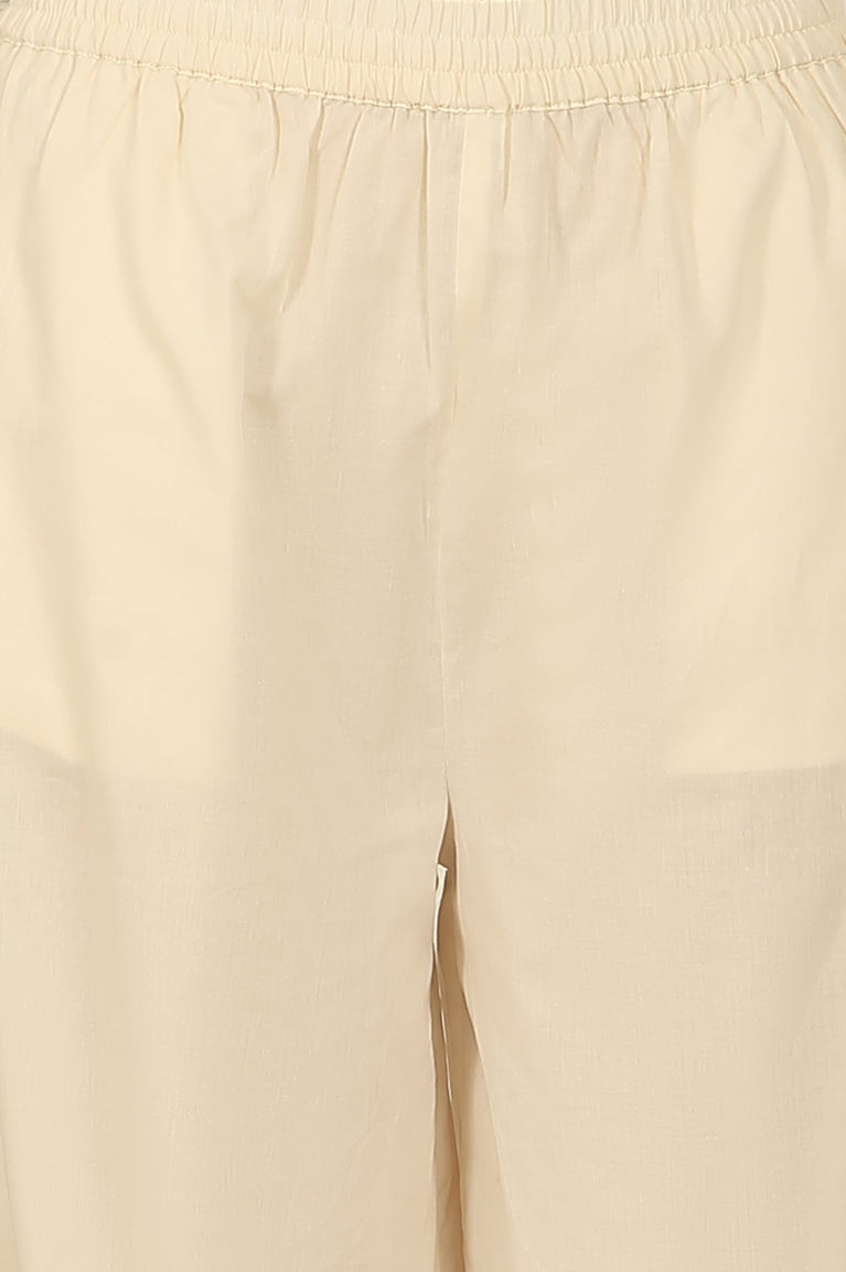 Crafted for effortless elegance, these white ankle-length palazzos feature a mid-rise elasticated waistband for a comfortable fit. The knit fabric offers a soft texture and fluid drape, making it perfect for casual outings or relaxed evenings. Pair it with a chic kurta or a fitted top to complete your look.