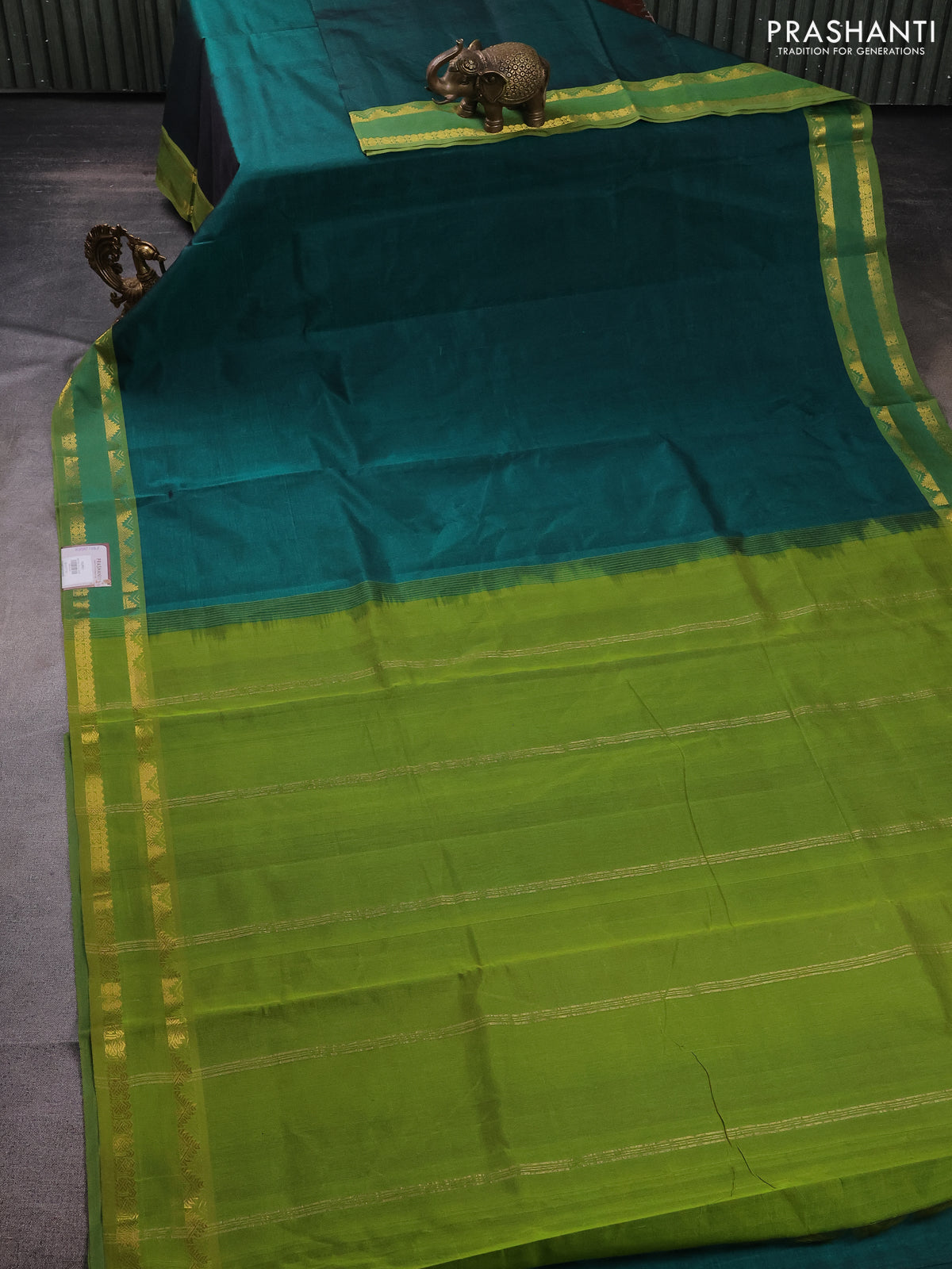 10 Yards silk cotton saree green and light green with plain body and rettapet zari woven border
