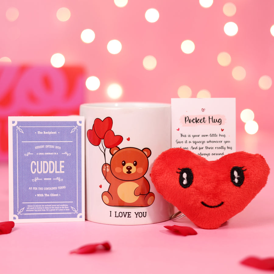 Hug Day is about closeness and comfort. The pocket hug card is perfect for when you miss each other, the cuddle contract adds a playful touch, and the I love you doodle mug turns a simple hug into something you can feel every day.