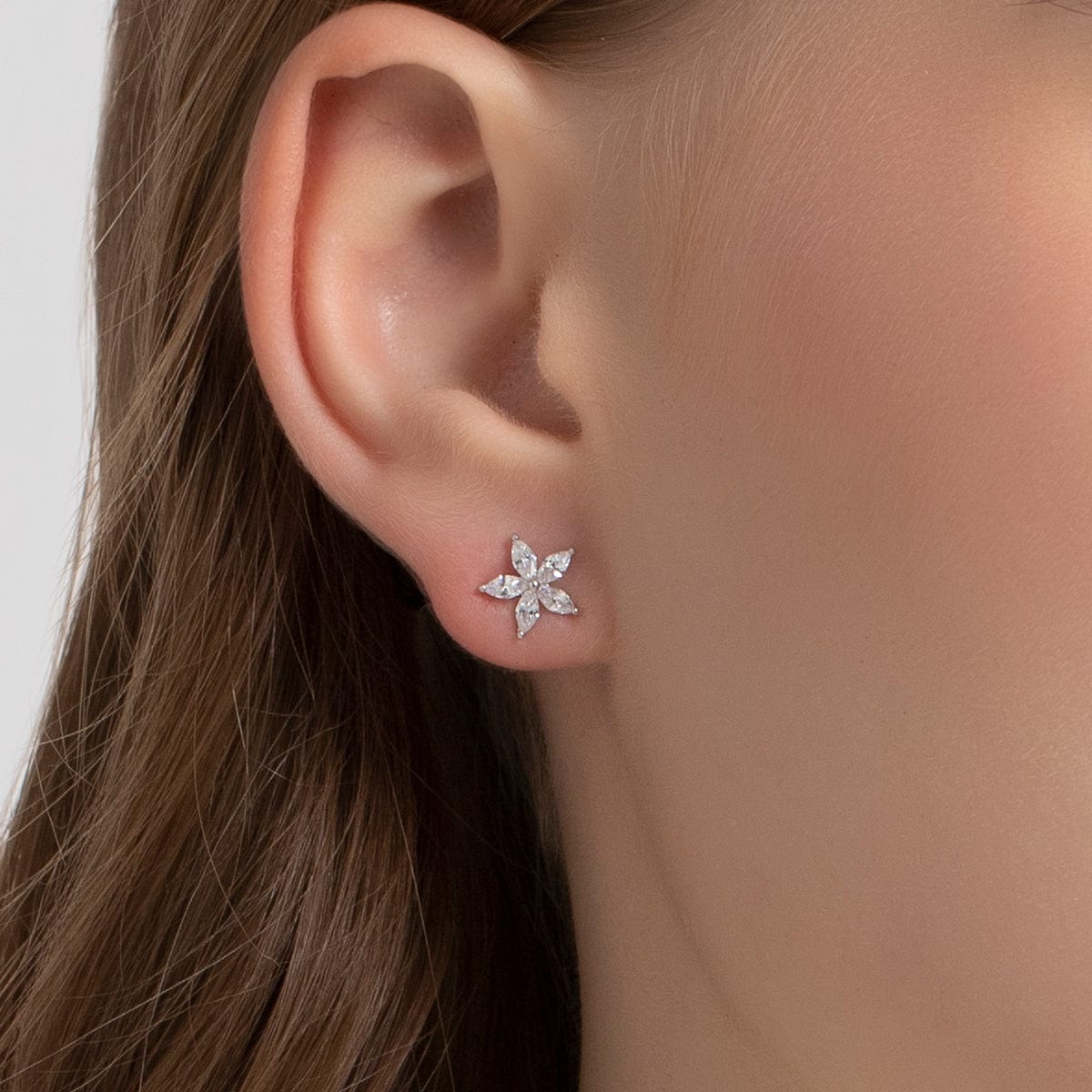 Kushal's Fashion Jewellery 92.5 Pure Silver Flower Design Earring