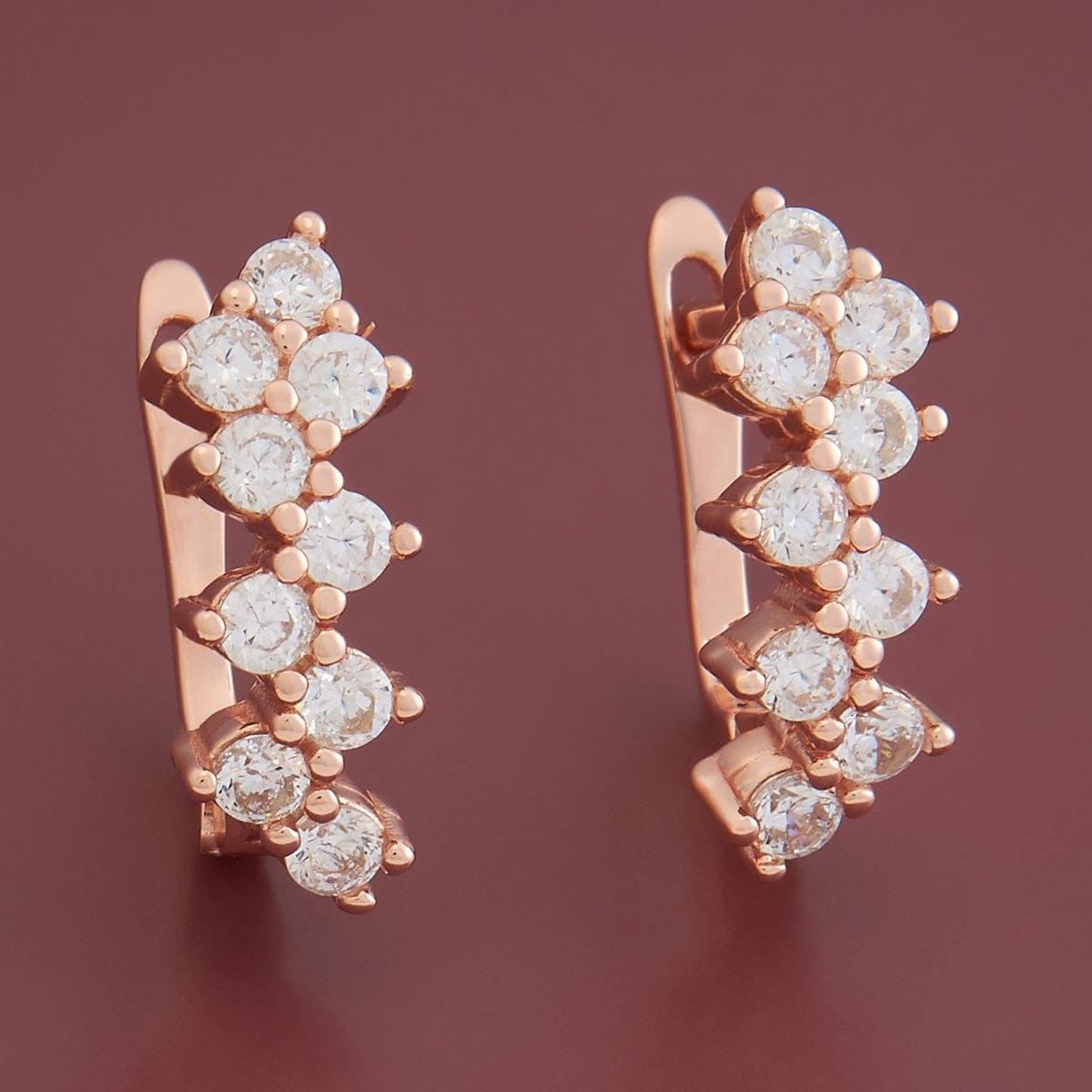 These 92.5 silver earrings, adorned with dazzling white zircon stones, are available in gold, rose gold, or rhodium polish. Their versatile design makes them the perfect accessory to pair with both a simple Indian suit or a stylish Western outfit, adding a touch of elegance and sophistication to any occasion.
