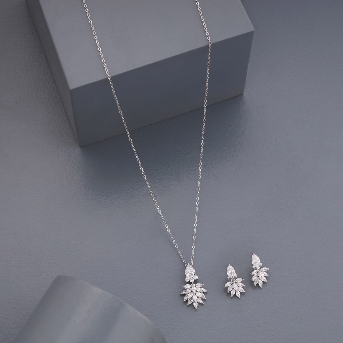 92.5 Silver Pendant with Chain and Earring Set 194797