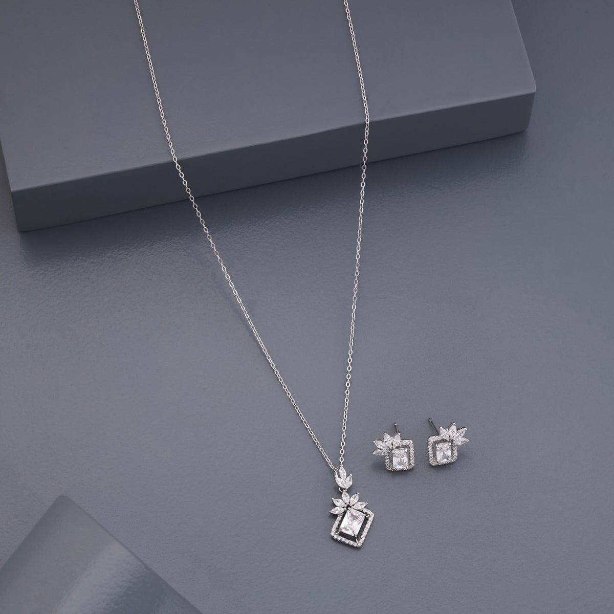 92.5 Silver Pendant with Chain and Earring Set 194808