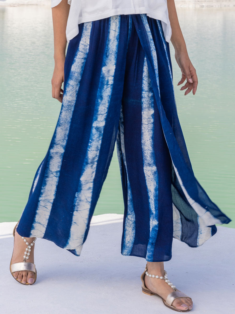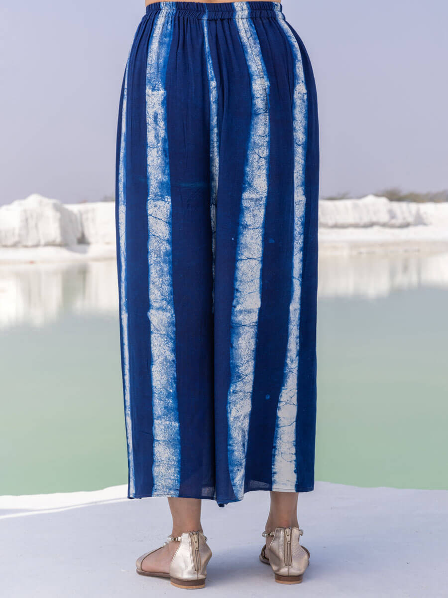 - Dabu handblock printed in natural blend indigo on flowy modal