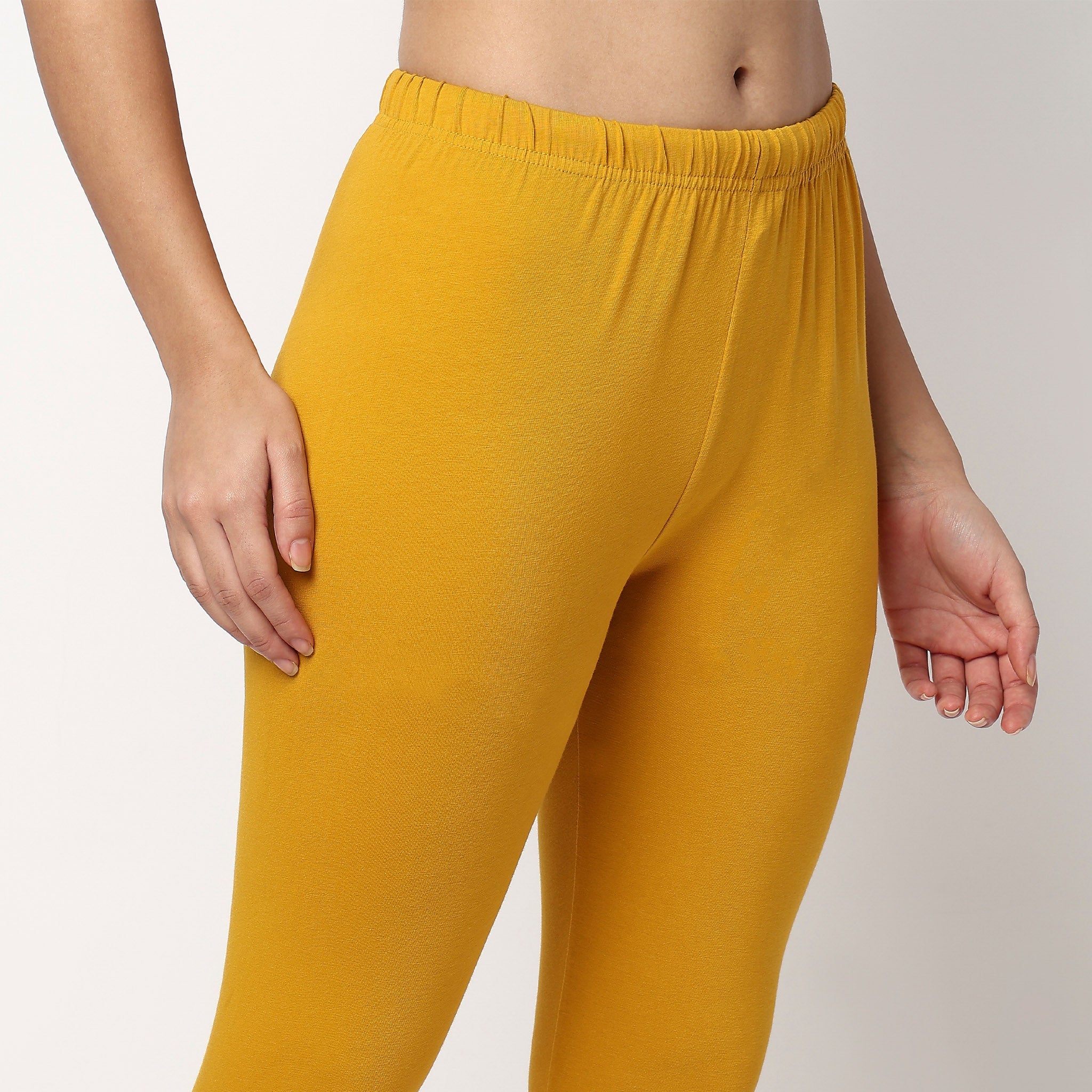 Experience the perfect blend of comfort and style with our Ankle Length Leggings. Crafted from a soft cotton elastane blend, these leggings offer a snug fit that moves with you, ensuring all-day comfort. The high-rise waist provides a flattering silhouette, making these leggings a versatile addition to your wardrobe. Whether you're heading to a yoga class or running errands, these leggings are your go-to choice for a sleek and modern look.