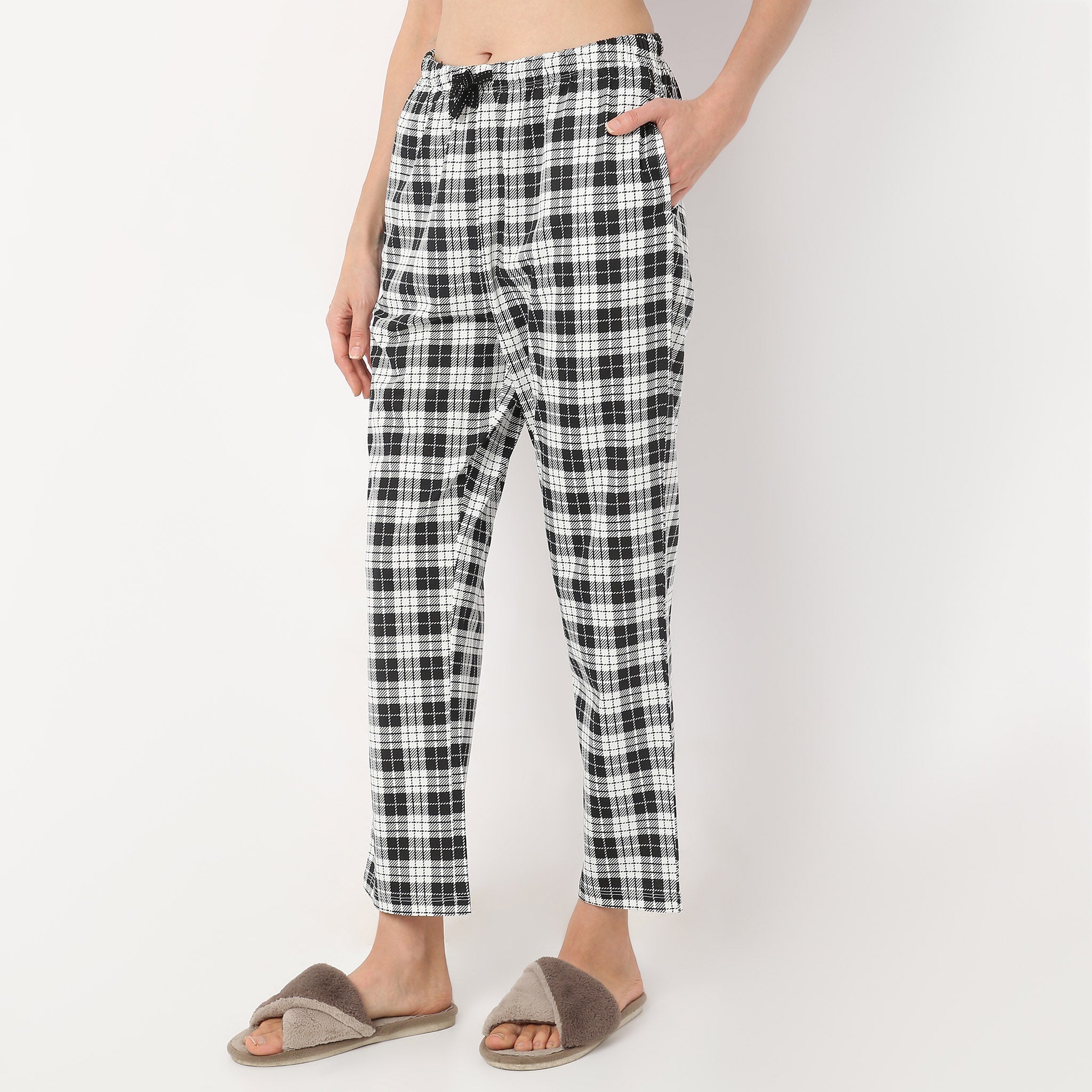 Ankle Length Straight Fit Checkered Lounge Pyjamas