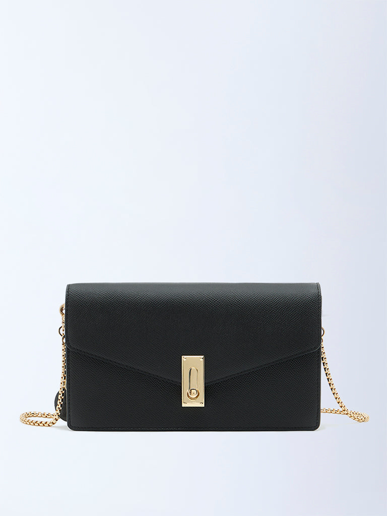 Accented with gold-tone detailing and a signature turn-lock closure, it features a chain strap for versatile styling.