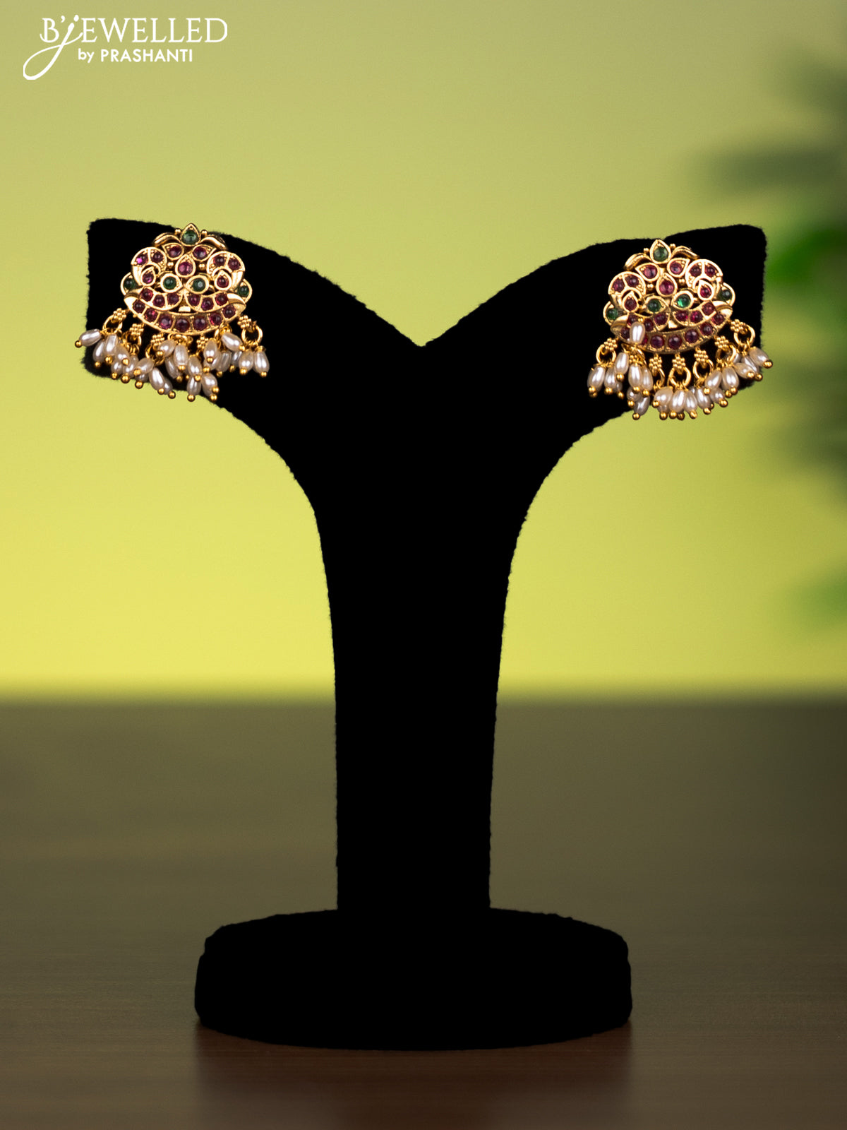 Antique attigai necklace with kemp stones and pearl hangings