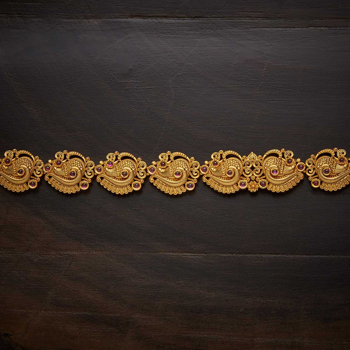 Define your waistline with the exquisite charm of our antique belt, crafted with copper alloy and adorned with embellished stones. The divinity-inspired design and adjustable chain create a perfect fit, making this belt a standout accessory for pujas and other festivities. Make a style statement with the deific touch of our antique belt.