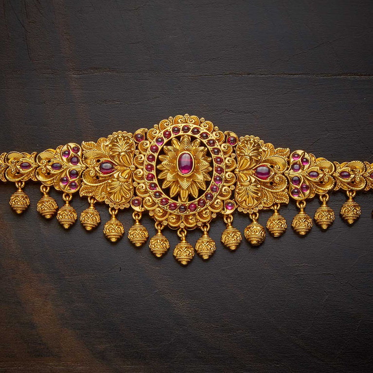 Flaunt a statement look with this classic gold waist belt which is going to be your perfect pick. The embossed design adds volumes to the magnificence that the design radiates.