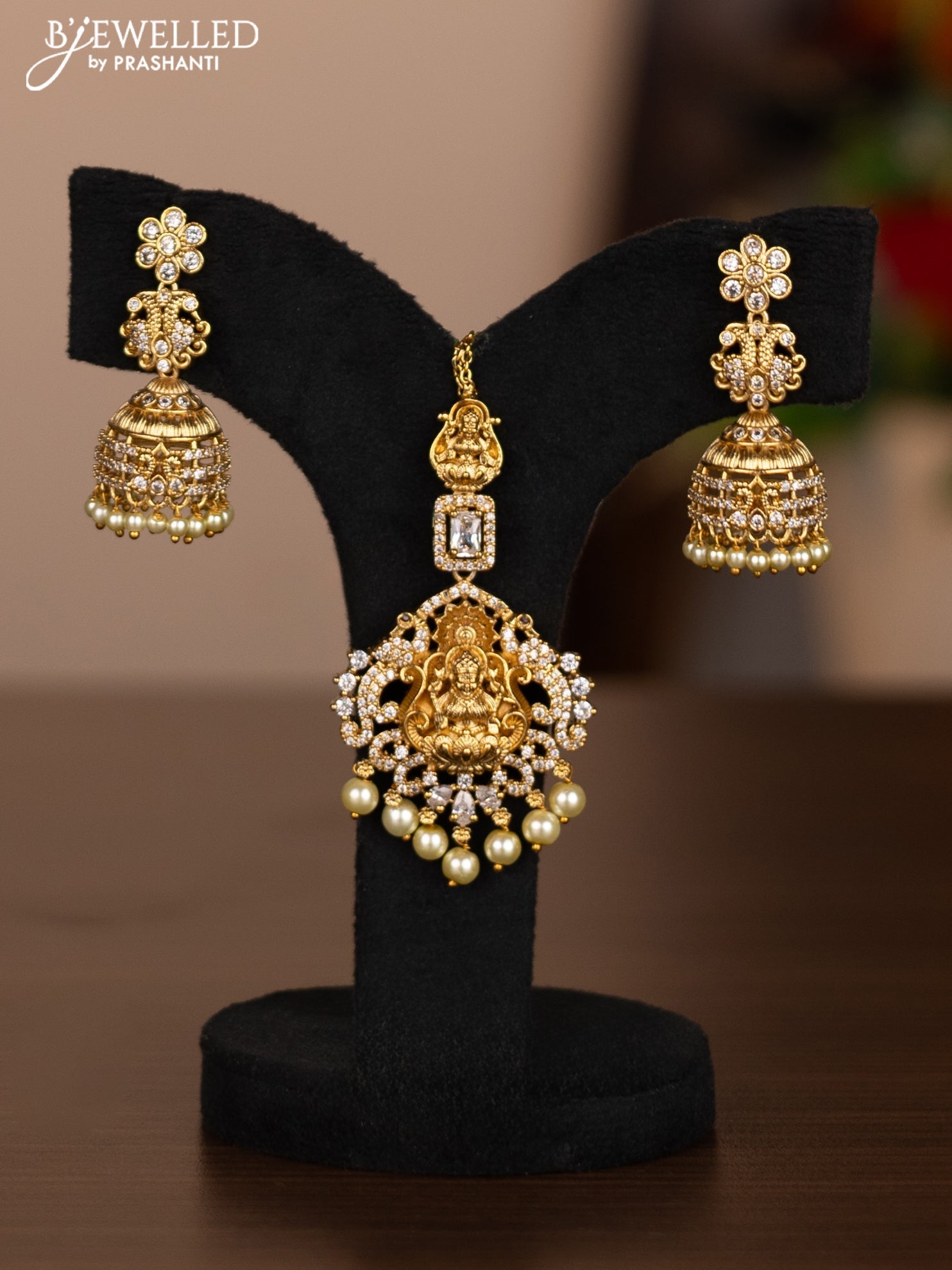 Antique combo set lakshmi design with cz stones and pearl & golden beads hanging
