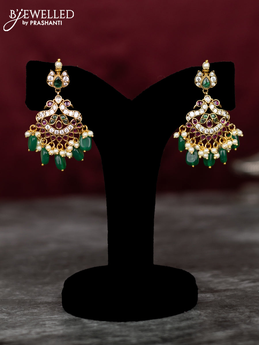 Antique guttapusalu necklace with kemp & cz stones and pearl & green beads hangings