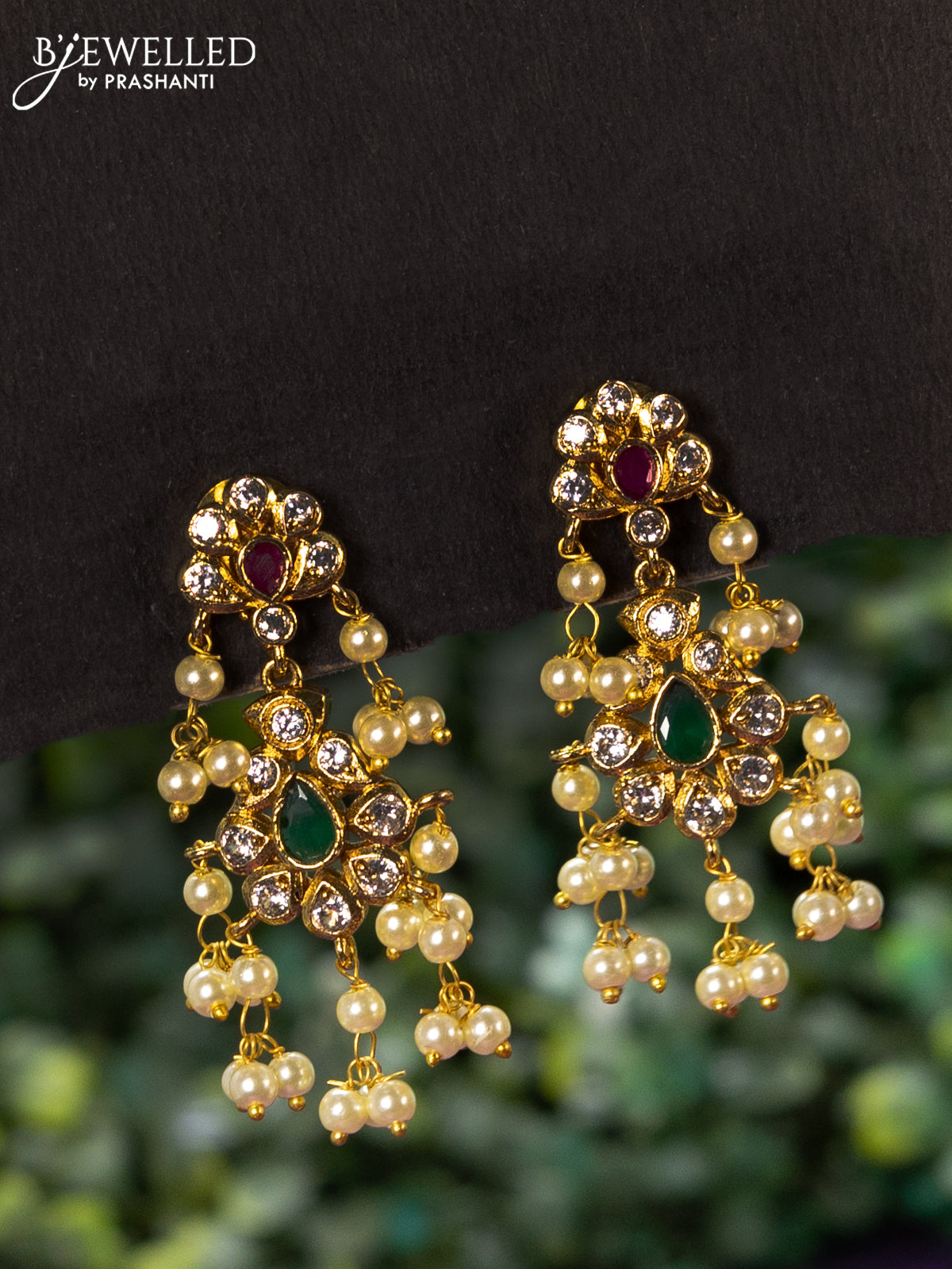 Antique guttapusalu necklace with kemp & cz stones and pearl hangings