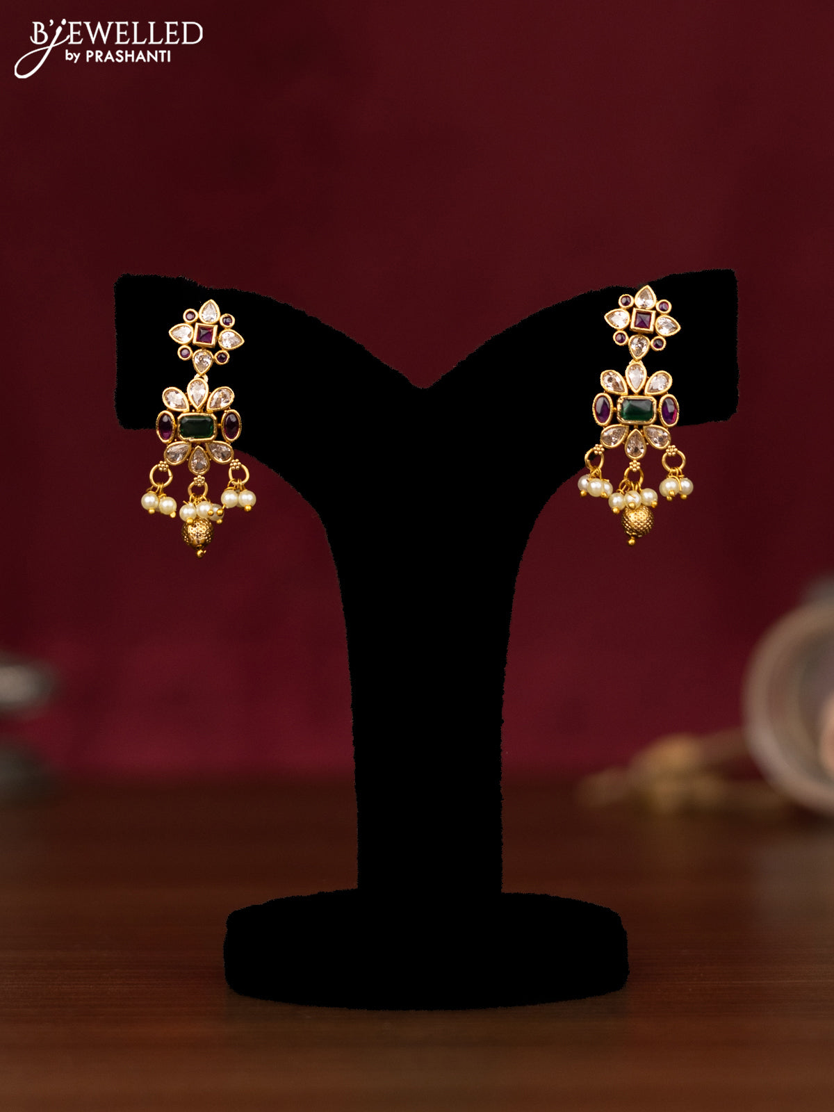Antique guttapusalu necklace with kemp & cz stones & gold and pearl hangings