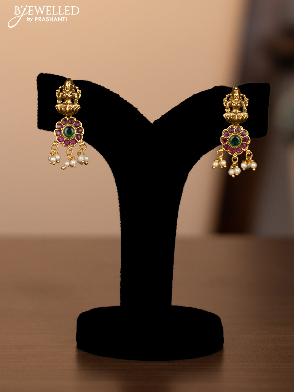 Antique necklace lakshmi & peacock design with kemp stones and pearl hangings