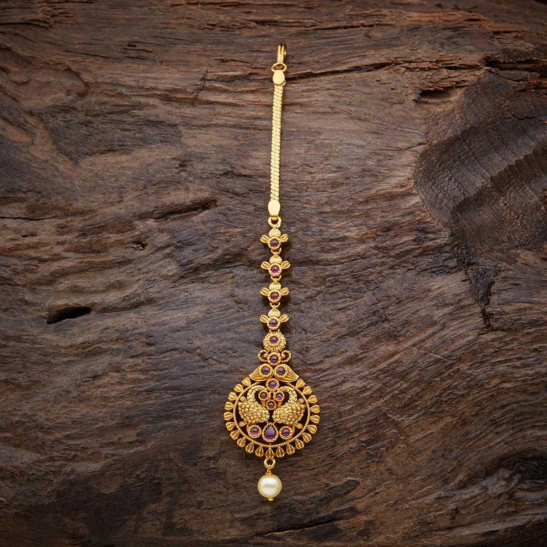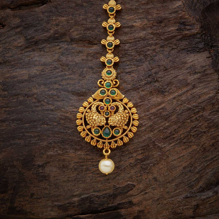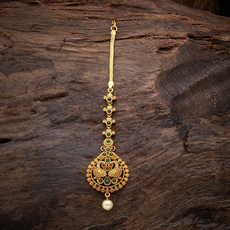 A magnificent Tikka can make your outfit go from bland to eye-catching, which is why we present our latest antique Tikka. The best part of this Tikka is the gold polish that compliments the shine of the ruby, green, and ruby-green stones used in it. Wear it with your favourite outfit.