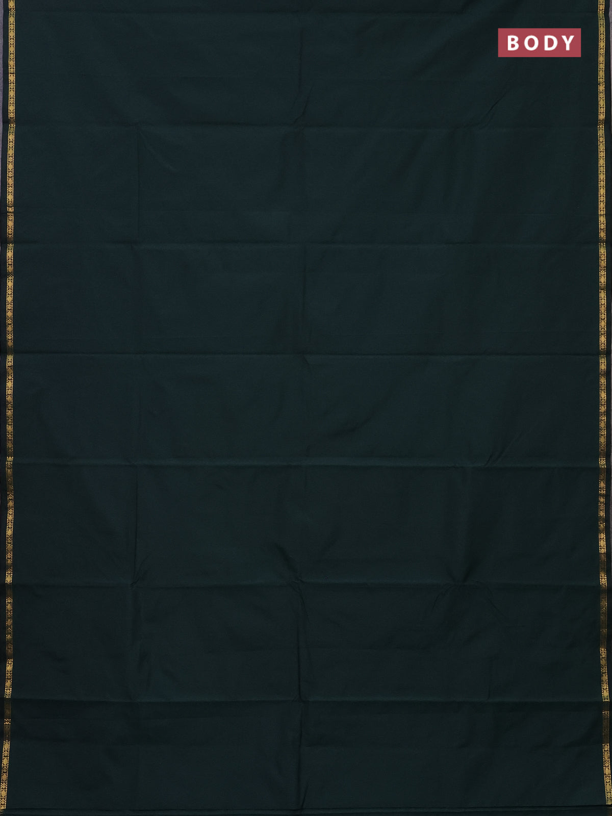 Arani semi silk saree bottle green with plain body and small zari woven border