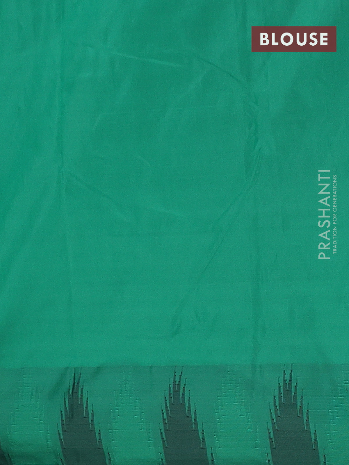 Arani semi silk saree dark magenta pink and green with plain body and temple design border