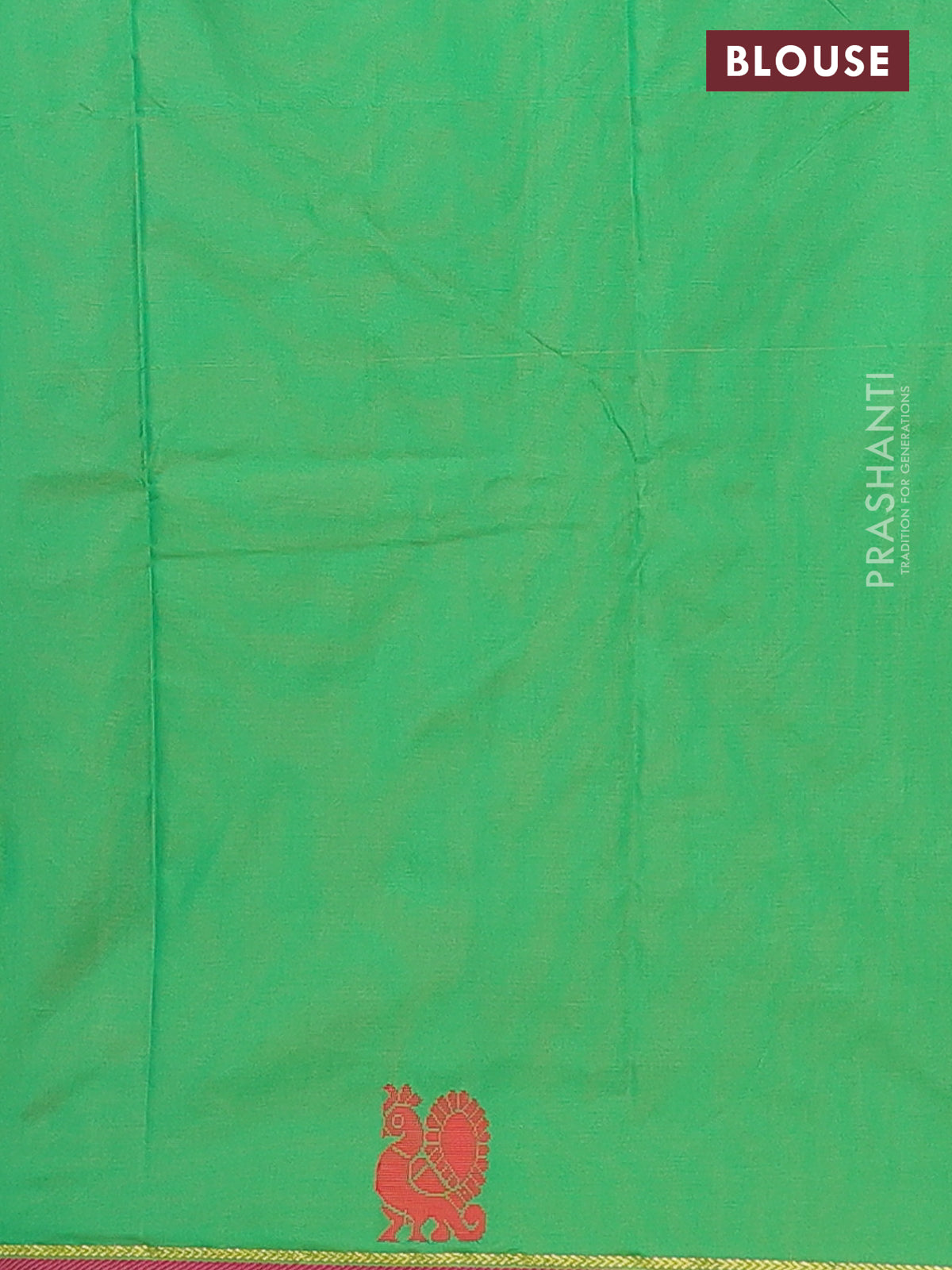 Arani semi silk saree dual shade of greenish violet and green with thread woven buttas and thread woven butta border