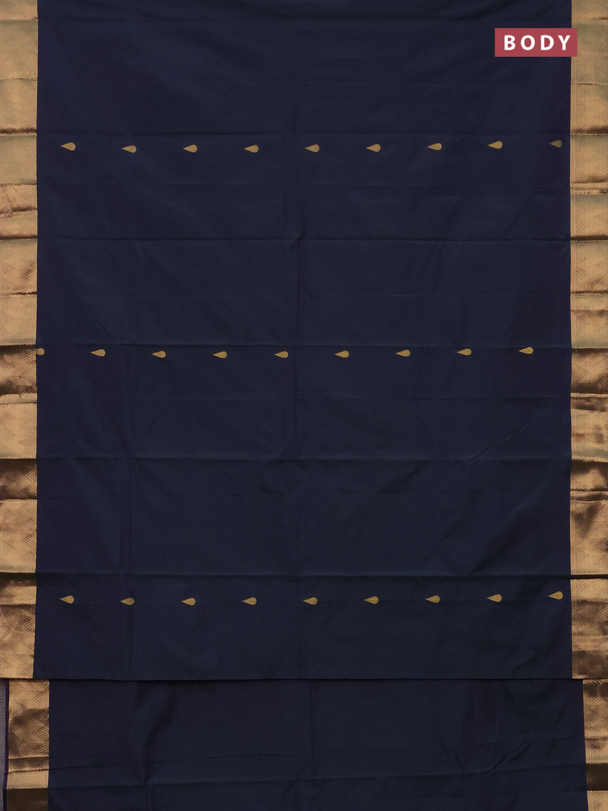Arani semi silk saree dual shade of greenish violet with zari woven thilak buttas and zari woven border