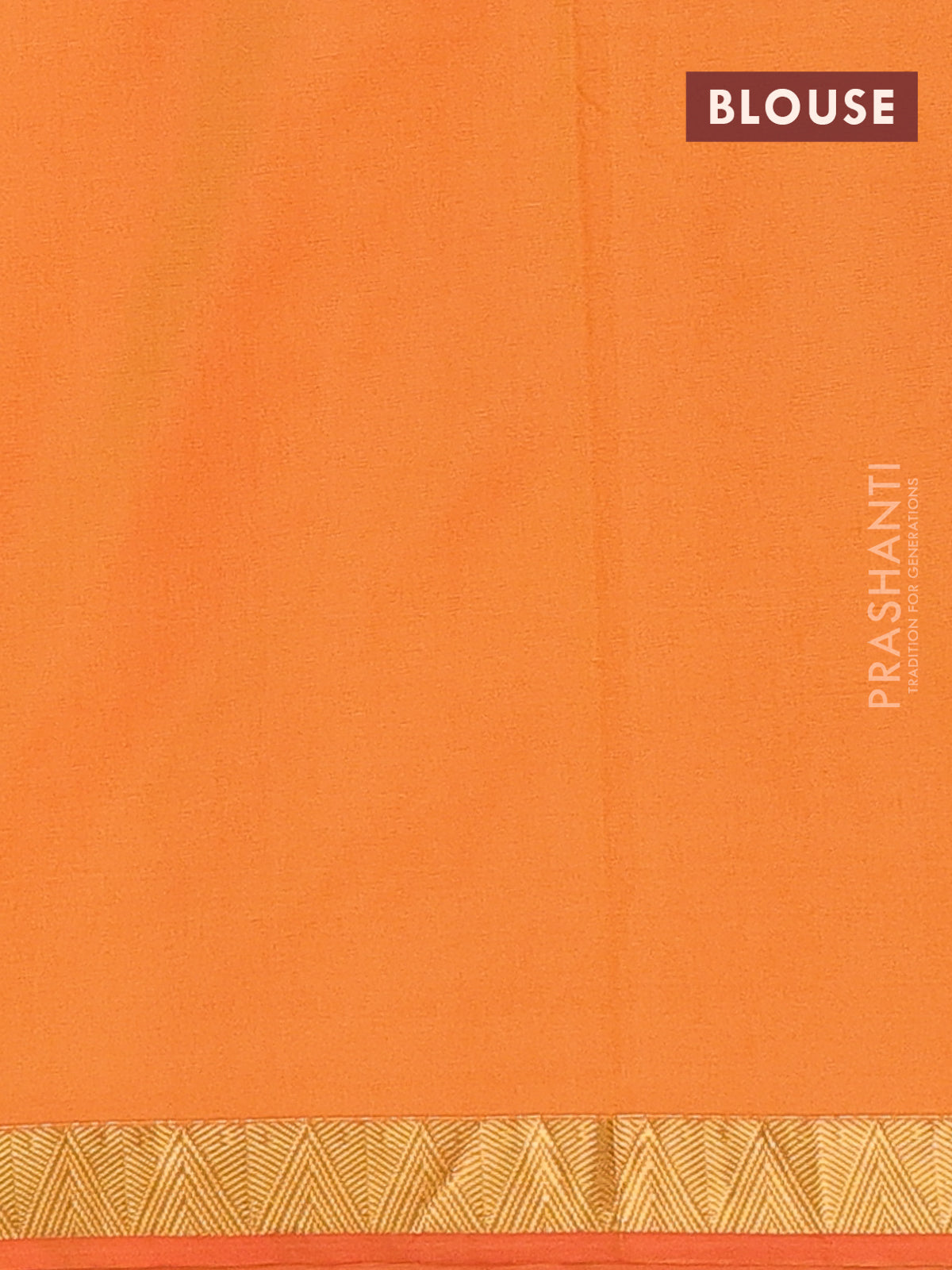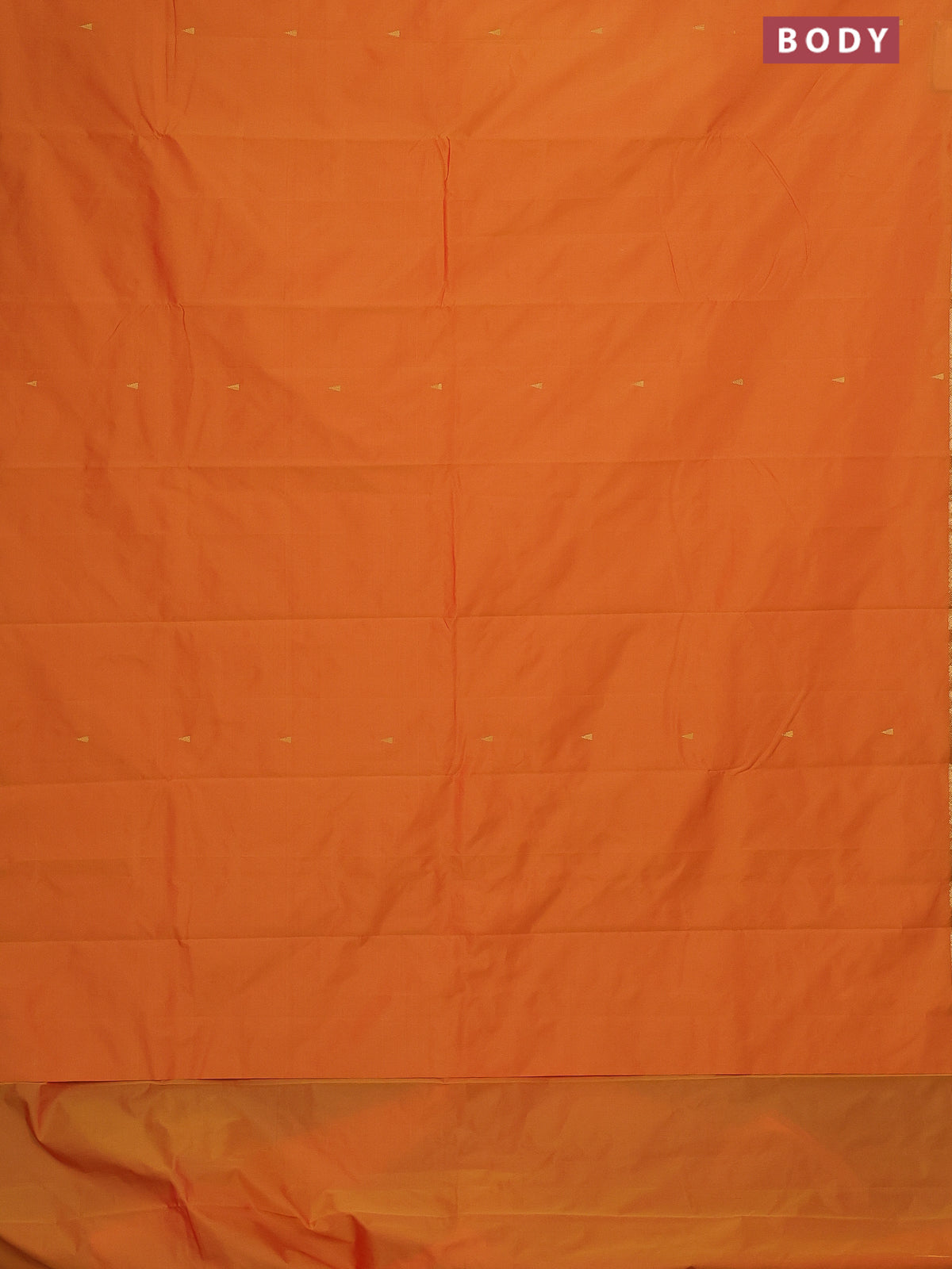 Arani semi silk saree dual shade of mango yellow with zari woven temple buttas and zari woven border