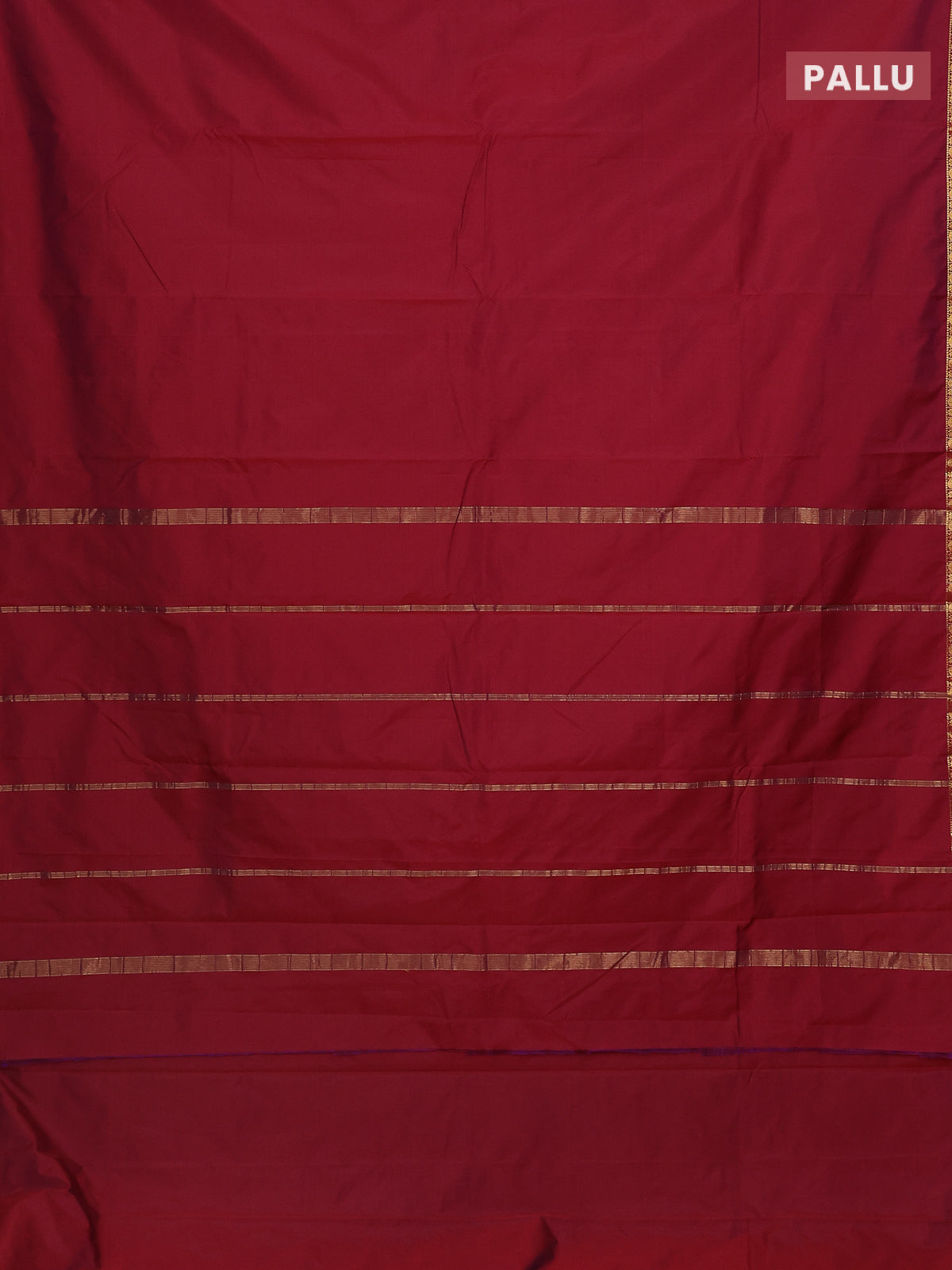 Arani semi silk saree dual shade of maroon with plain body and small zari woven border