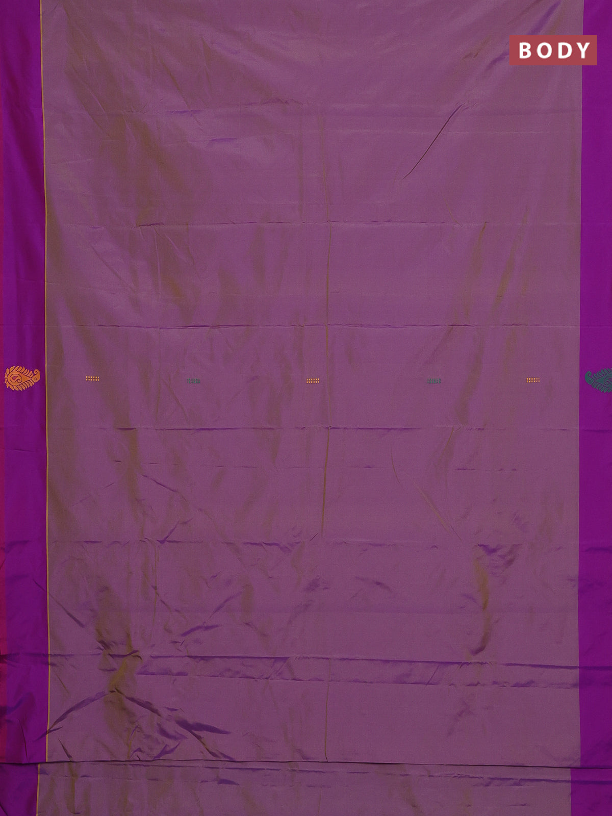 Arani semi silk saree dual shade of mild purple and green with thread woven buttas and thread woven butta border