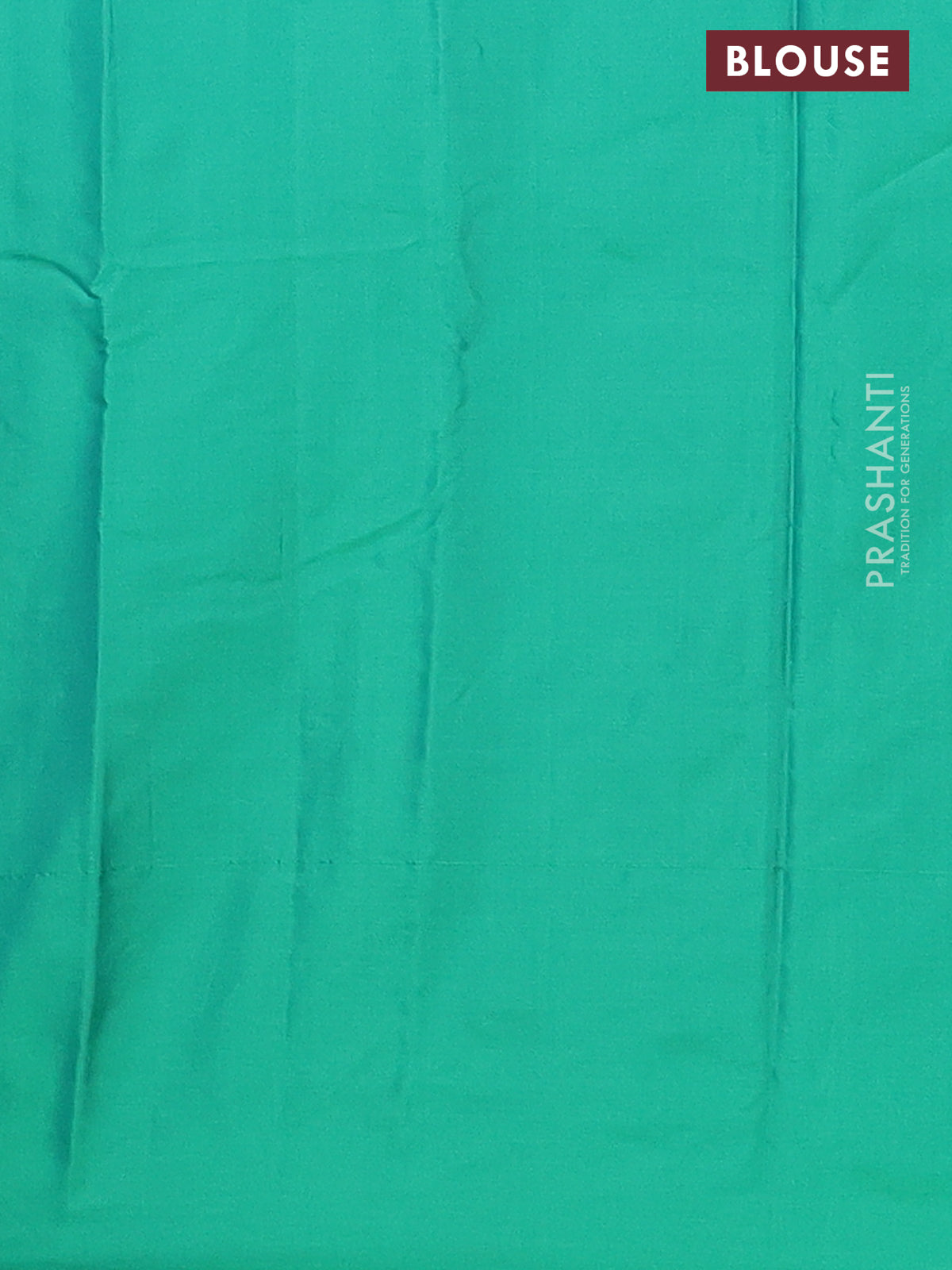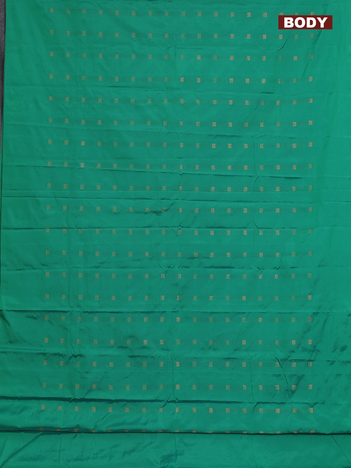 Arani semi silk saree green with copper zari woven buttas in borderless style