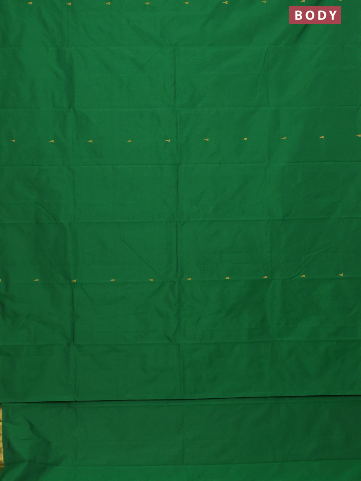 Arani semi silk saree green with zari woven temple buttas and zari woven border