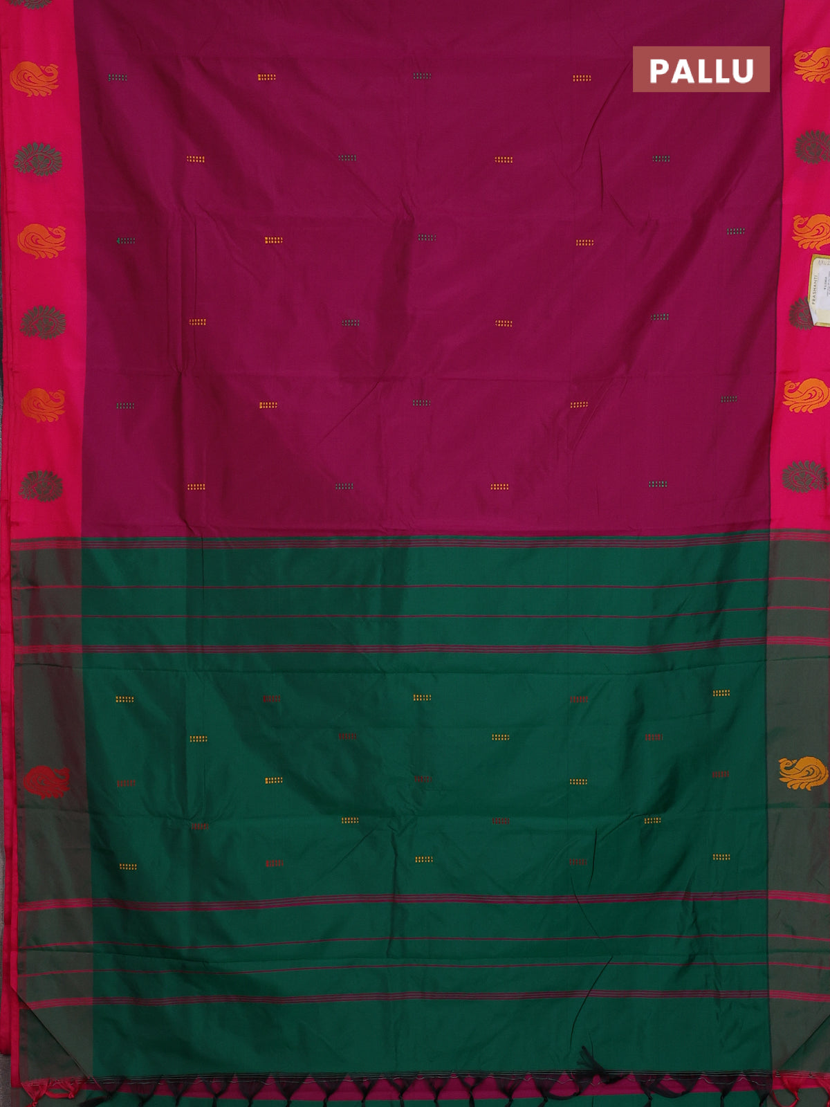 Arani semi silk saree magenta pink and dual shade of green with thread woven buttas and thread woven butta border