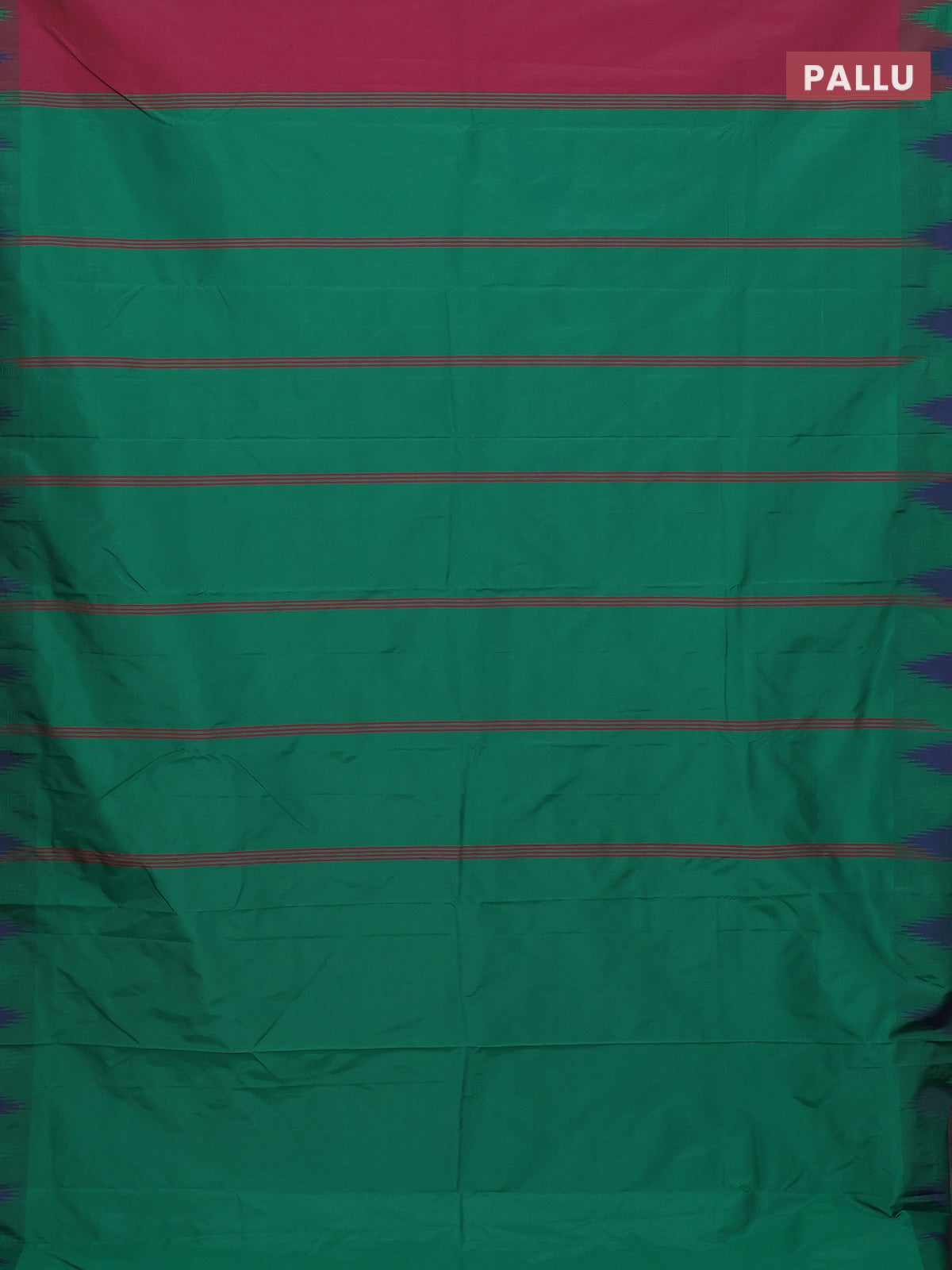 Arani semi silk saree magenta pink and green with plain body and temple design border
