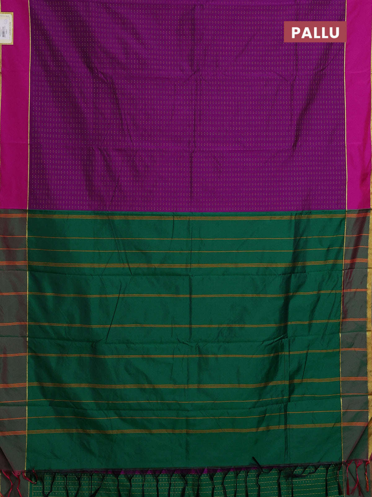 Arani semi silk saree purple and green with allover thread weaves and rettapet zari woven border`