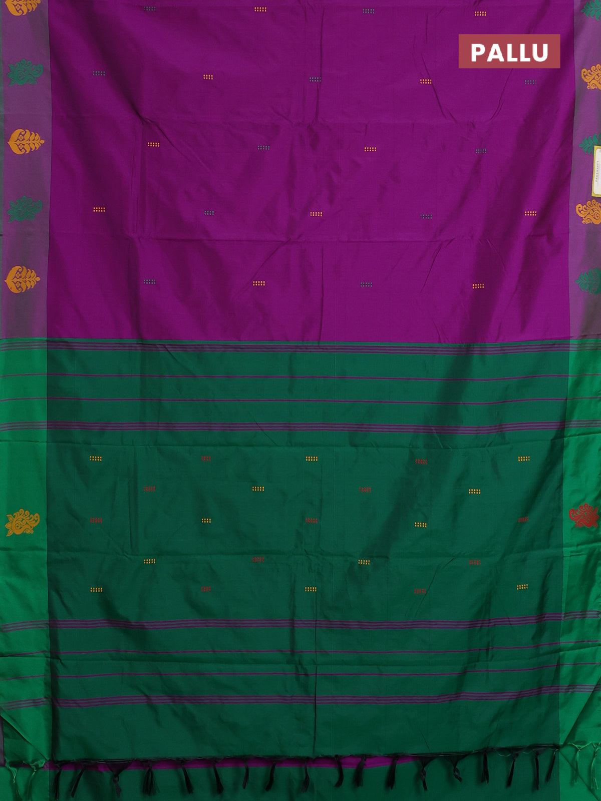 Arani semi silk saree purple shade and green with thread woven buttas and thread woven butta border