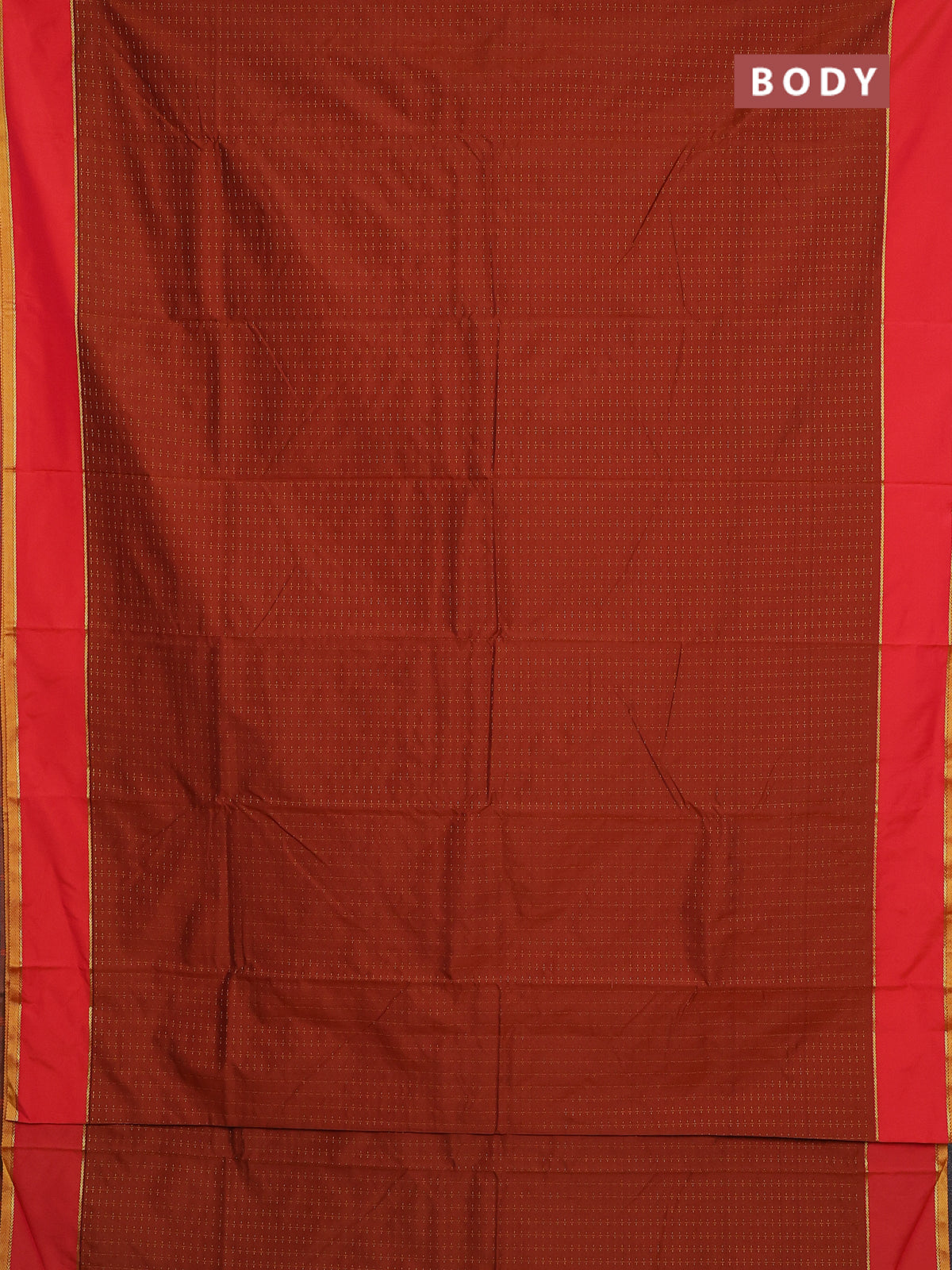 Arani semi silk saree rust shade and green with allover thread weaves and rettapet zari woven border`