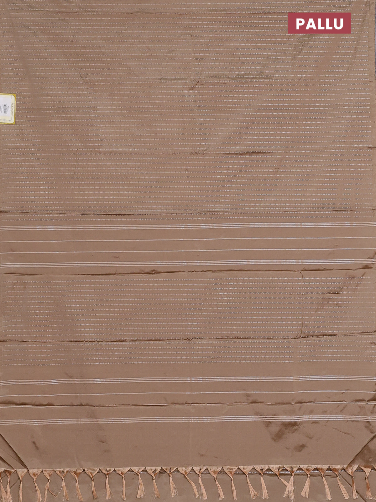 Arani semi silk saree sandal with allover silver zari weaves in borderless style