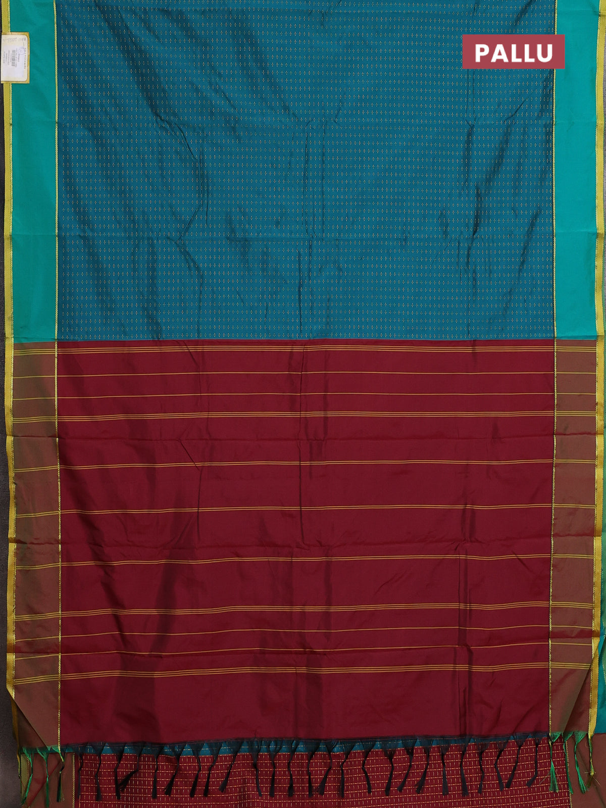 Arani semi silk saree teal green and dual shade of maroonish green with allover thread weaves and rettapet zari woven border`