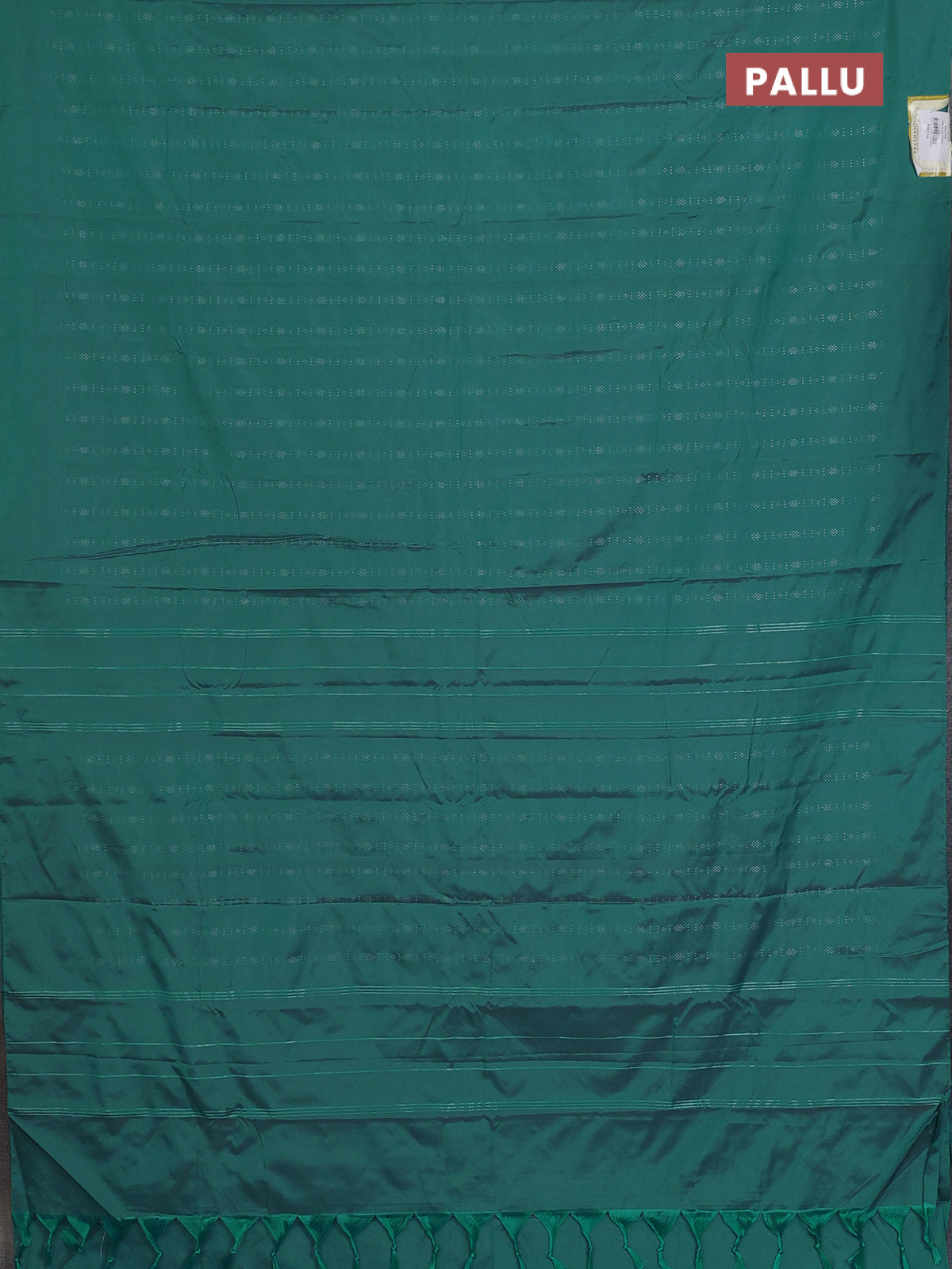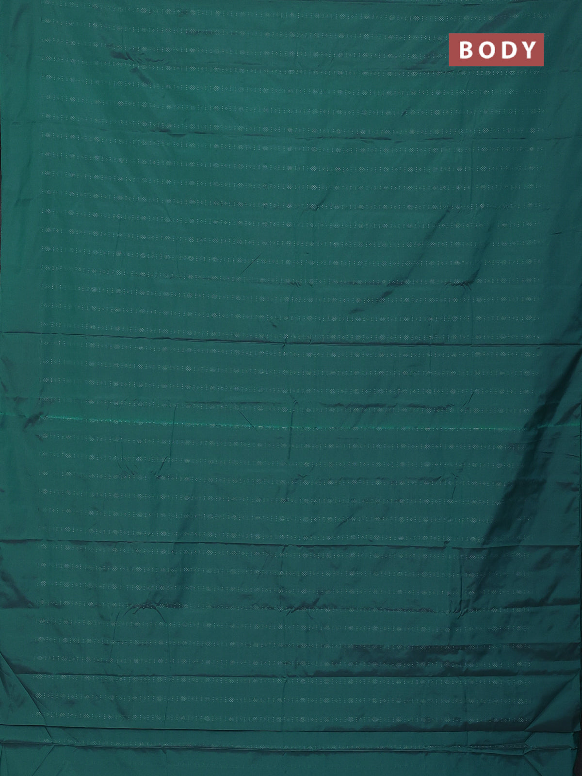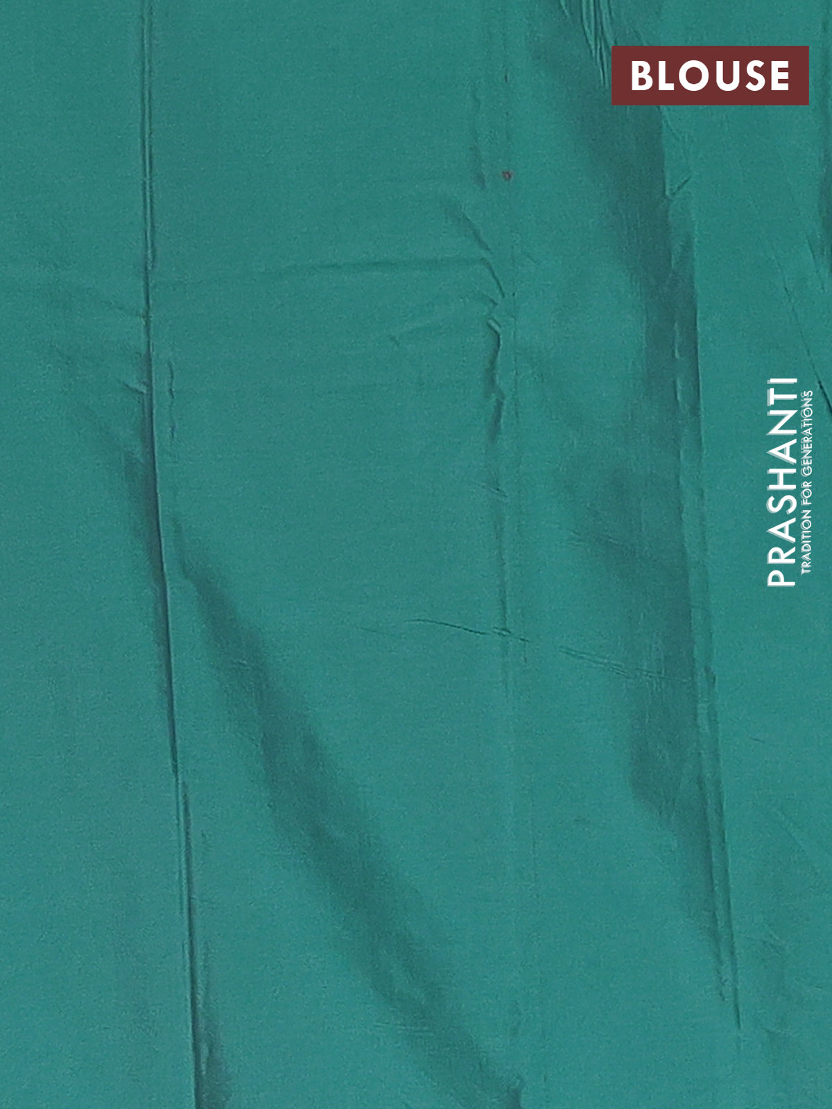 Arani semi silk saree teal green with allover silver zari weaves in borderless style