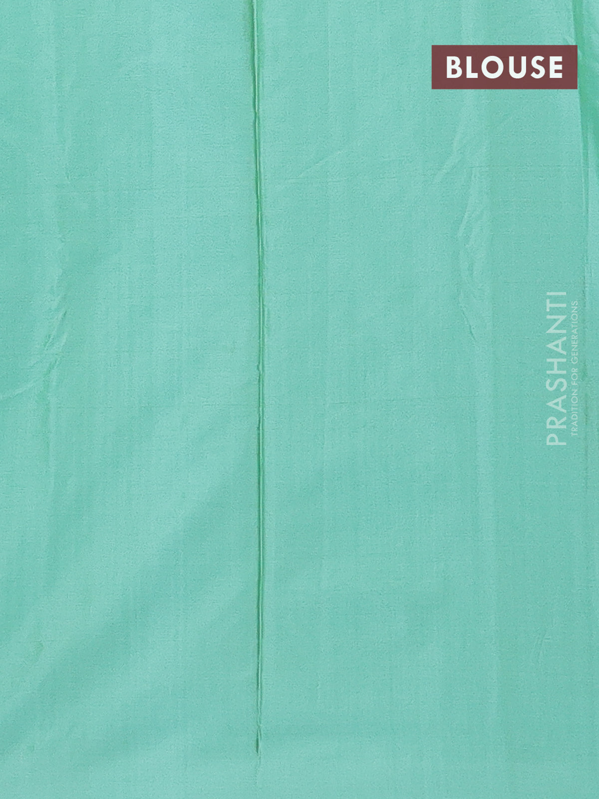 Arani semi silk saree teal green with allover zari weaves in borderless style