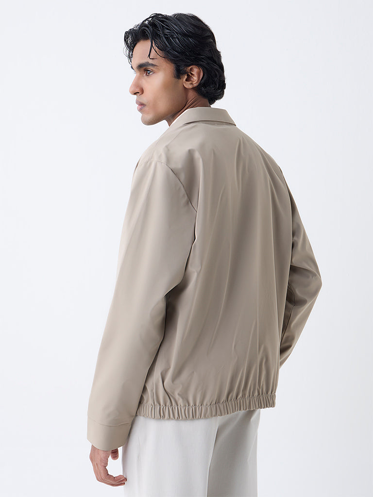 Ascot introduces this beige jacket, sculpted from premium-quality fabric in a relaxed-fit silhouette. It features a spread collar, full sleeves, a zip-up front and kangaroo pockets for a modern finish. A smart outer layer that brings effortless polish to everyday casual looks.