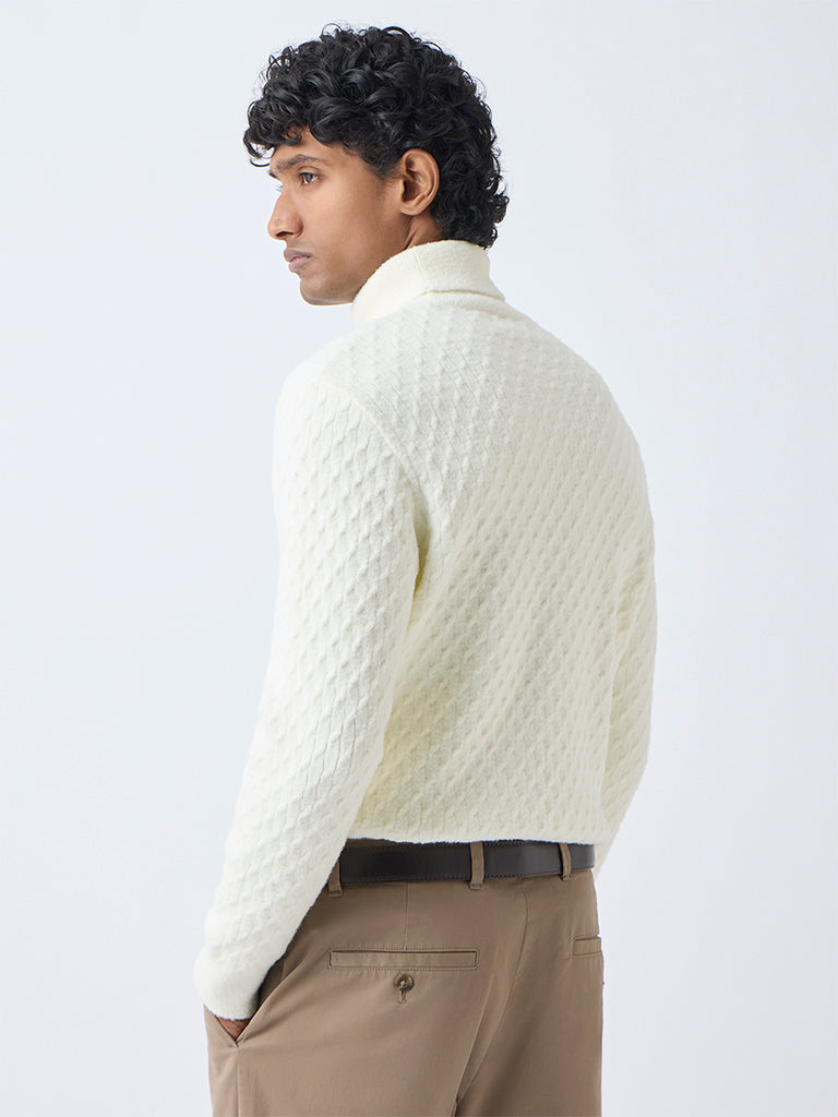 Ascot introduces a cream sweater that blends winter comfort with effortless elegance. Crafted in a relaxed fit from a premium warmth fabric, it features a snug turtle neck and a cable-knit pattern that adds depth and texture. A go-to layering staple for crisp commutes and easy weekend lounging alike.