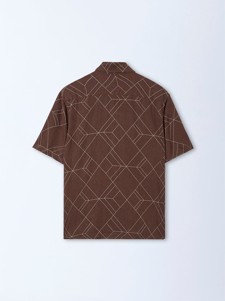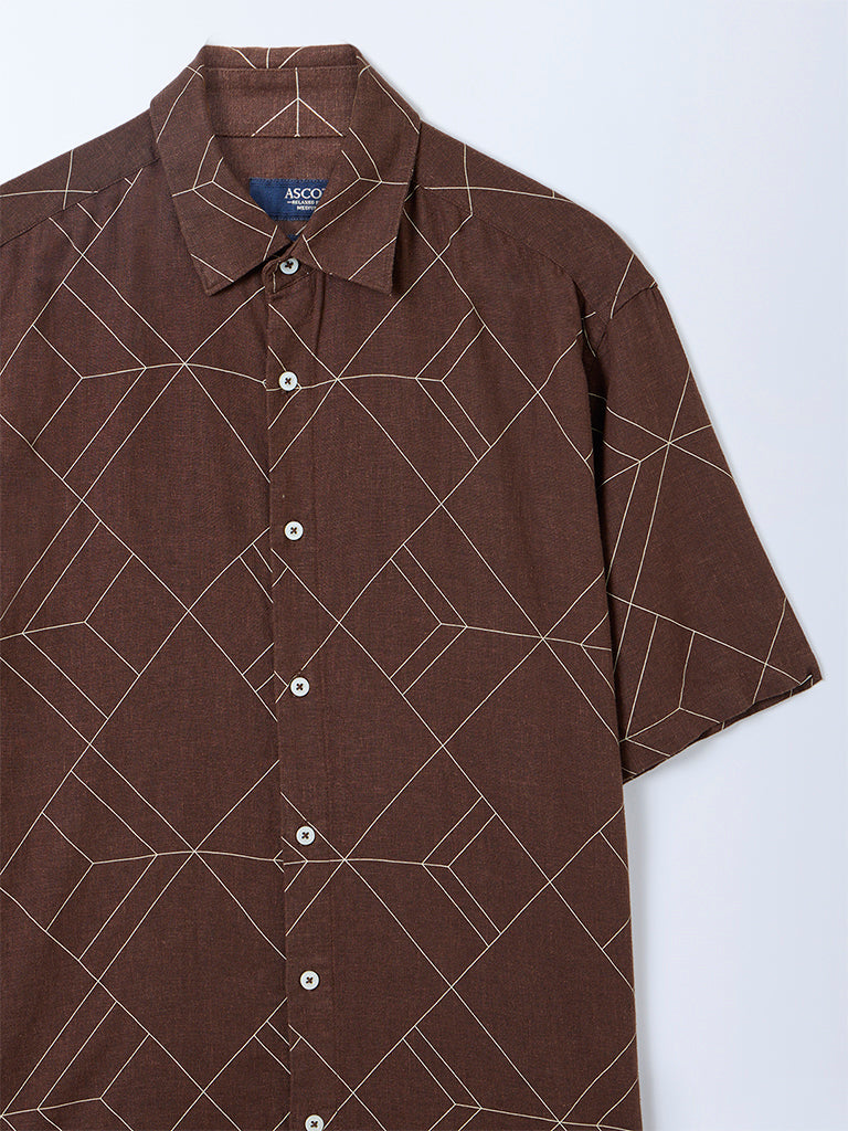 Ascot Dark Brown Printed Relaxed Fit Linen Blend Shirt